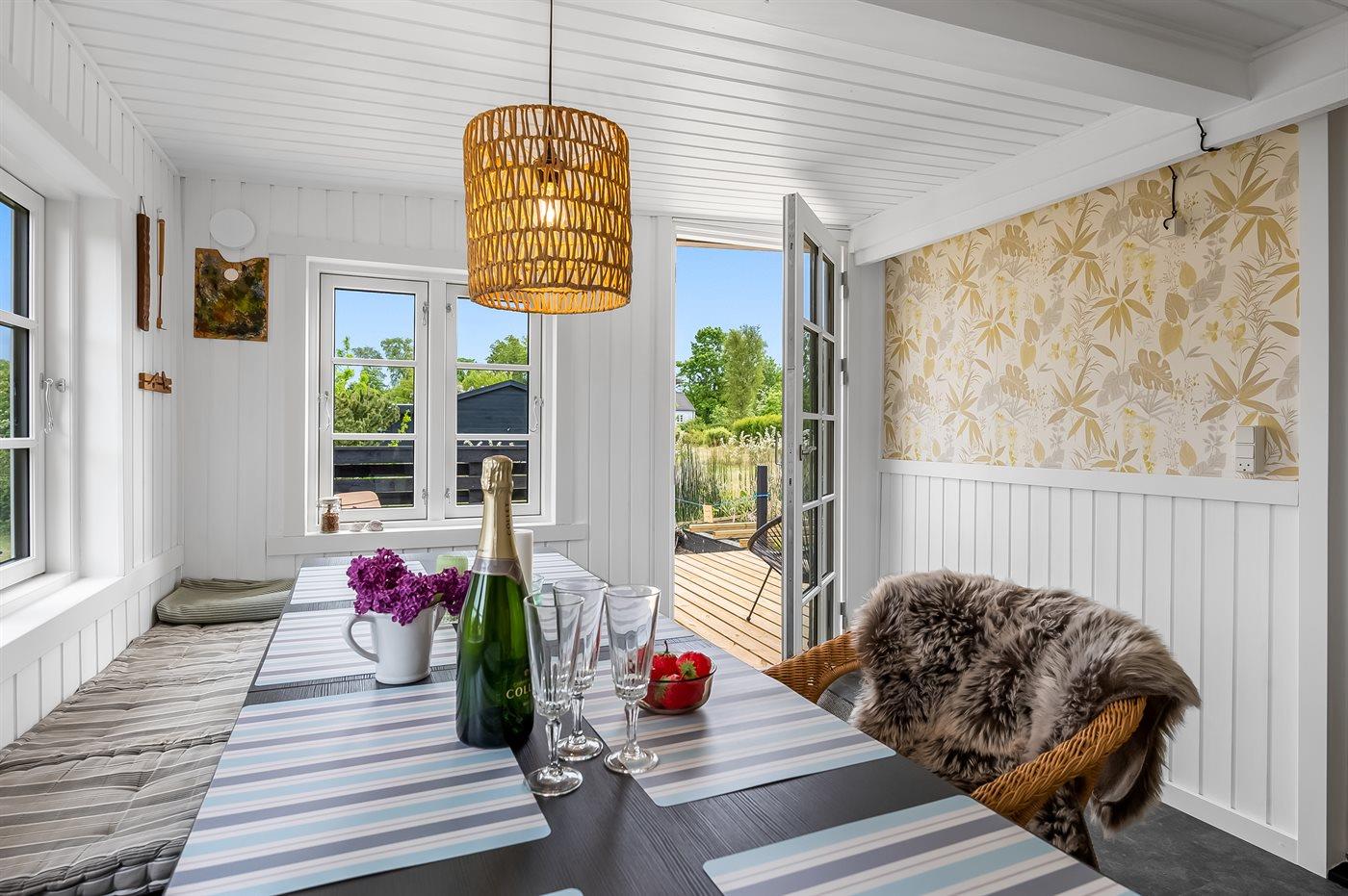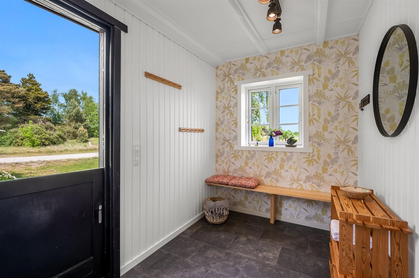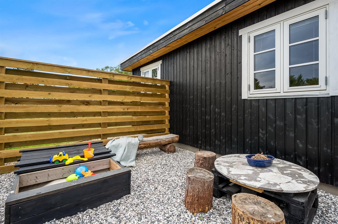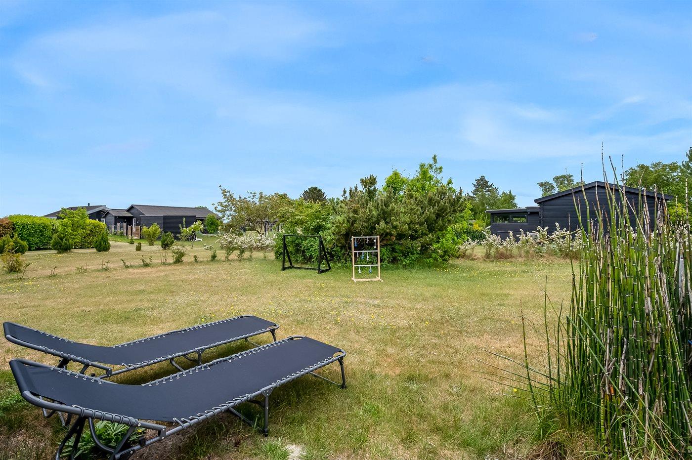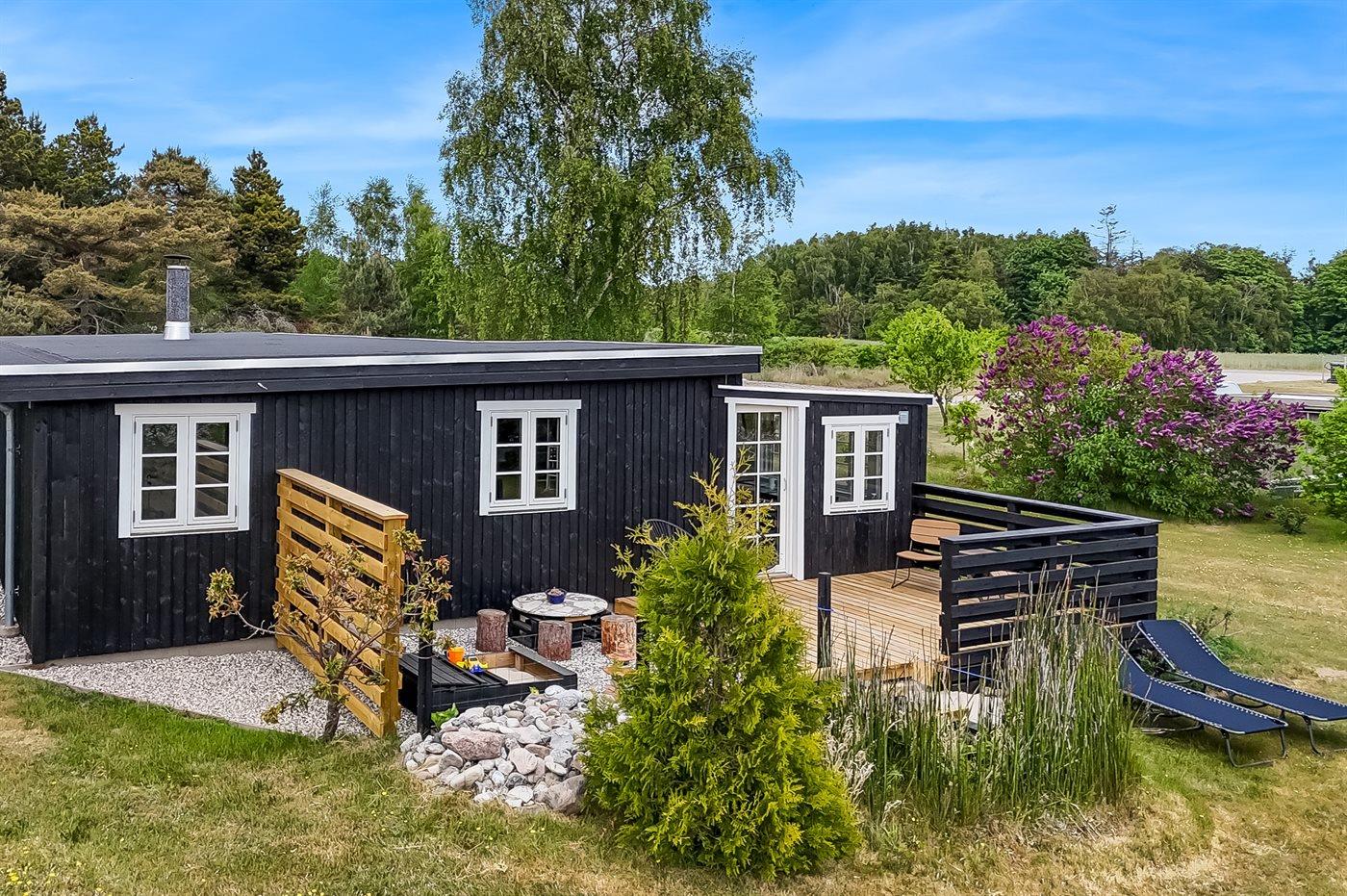 Sommerhuset er lyst og moderne med 3 soveværelser med senge der måler henholdsvis 140 x 200 cm, 160 x 200 cm og et værelse med 2 enkelte senge, som hver måler 80 x 200 cm. Husets hjerte er den dejlige stue med brændeovn, som ligger i åben forbindelse med køkken-alrummet. Der findes også en skøn havestue med legehjørne til børnene og et stort spisebord så der er plads til hele familien. Køkkenet er udstyret med køleskab, fryser, induktionskogeplader, varmluftsovn, mikrobølgeovn og opvaskemaskine.