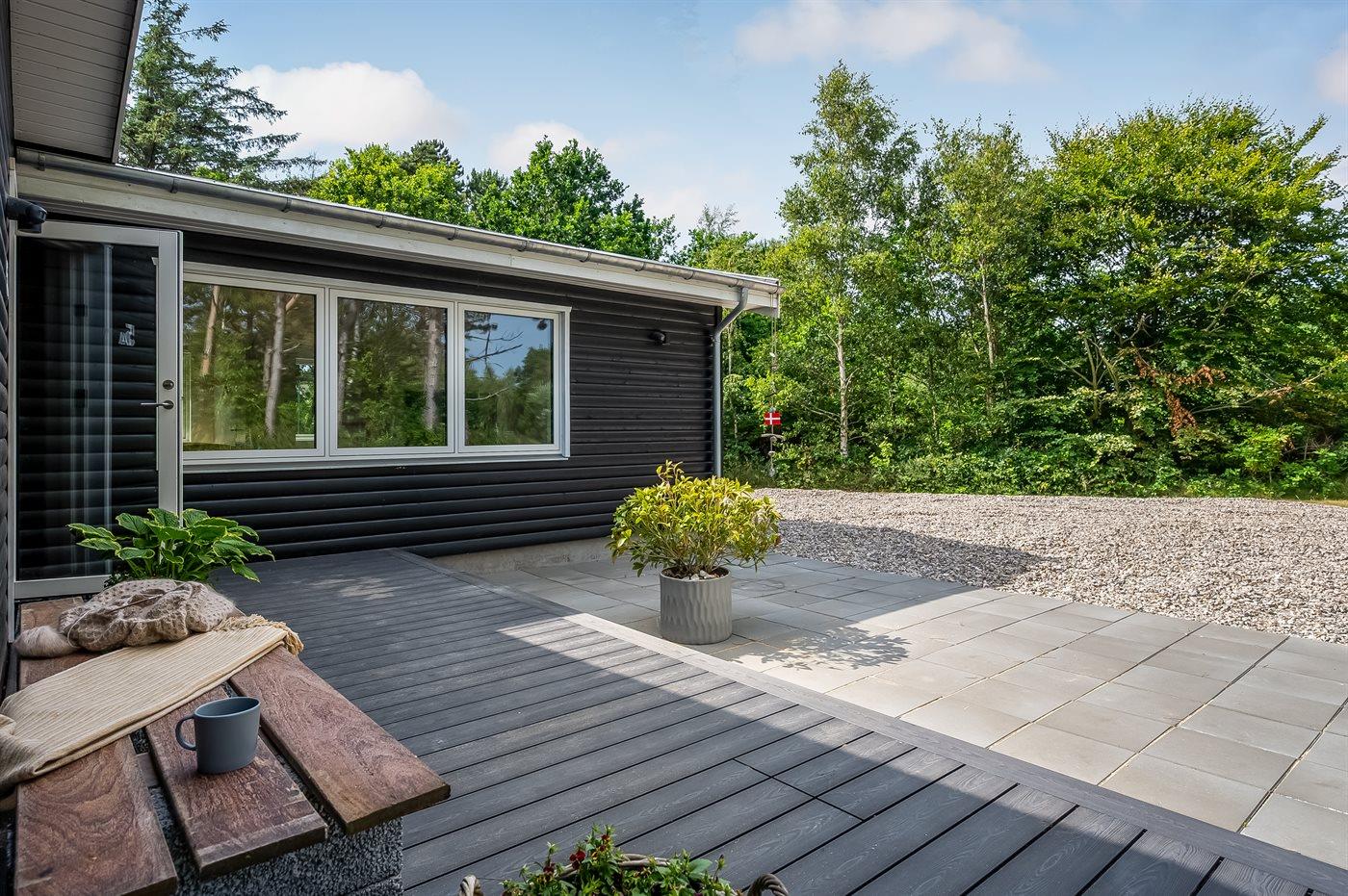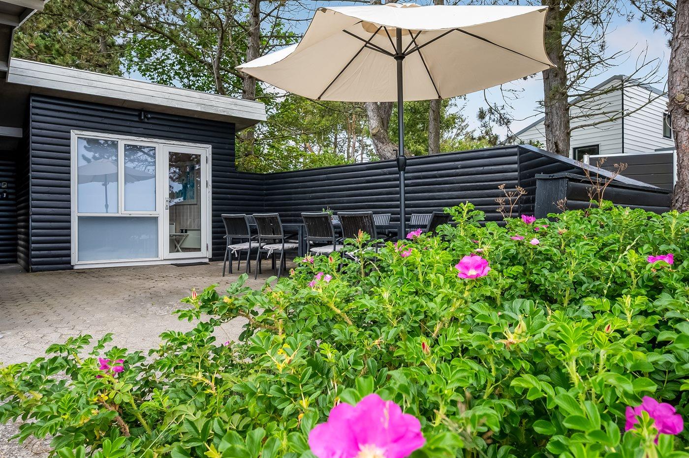 Ferieboligen er beliggende på en 1200 m² stor naturgrund. Der er 25 m til havet. Nærmeste forretning er beliggende i en afstand af 1000 m. Til ferieboligen hører åbent terrasseareal. Gynge. Der ligger en legeplads i en afstand af 1000 m. Grill til rådighed. Parkering ved ferieboligen.