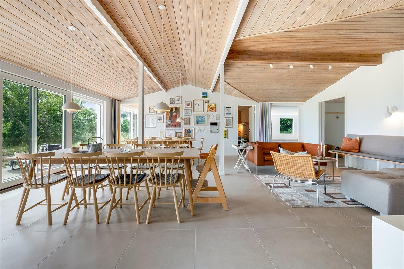 Velkommen til dette spektakulære sommerhus, hvor luksus mødes med natur og udsigt. Beliggende for enden af en rolig og blind grusvej har huset en fantastisk udsigt over Kattegat og egen adgang til en smuk sandstrand, hvor du kan nyde stranden uden at blive forstyrret af andre end dine nærmeste naboer. Huset blev totalrenoveret i foråret af 2025 og er indrettet med personlighed og sjæl med ønske om at skabe en hjemlig fornemmelse. Der er 3 badeværelser og 7 rummelige soveværelser, hver indrettet med store senge og en god fordeling i forskellige ender af huset. De to separate opholdsafdelinger giver mulighed for, at man både kan samles og dele sig op efter ønsker og behov. De hyggelige opholdsrum og kroge gør, at man altid kan finde plads til både samvær og mulighed for at trække sig med en bog.