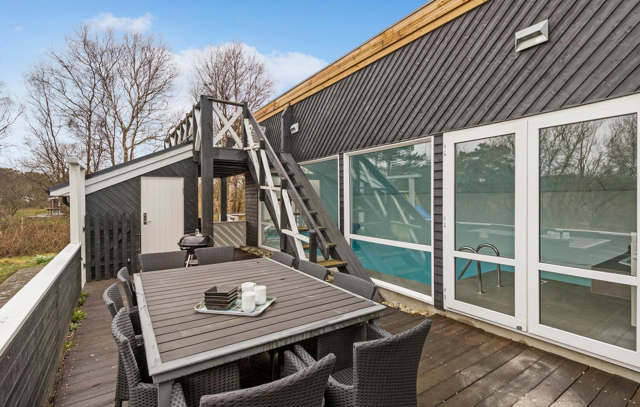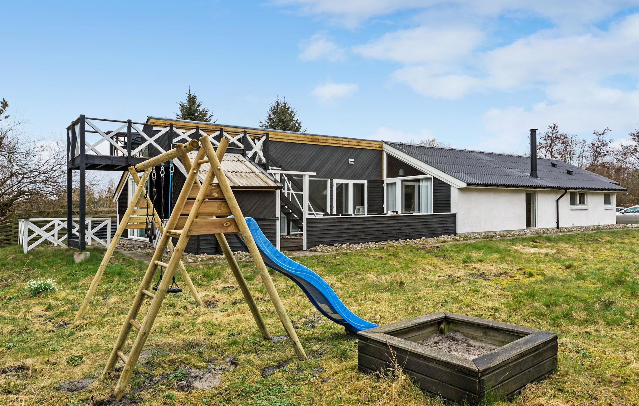 Udendørs byder huset på tre terrasser, hvor den ene har en fantastisk udsigt over omgivelserne. Mens de voksne kan hygge sig med en bog eller et krydsord i solen eller skyggen, kan børnene spæne rundt og lege i haven, hvor de også kan boltre sig på gyngerne og rutsjebanen.