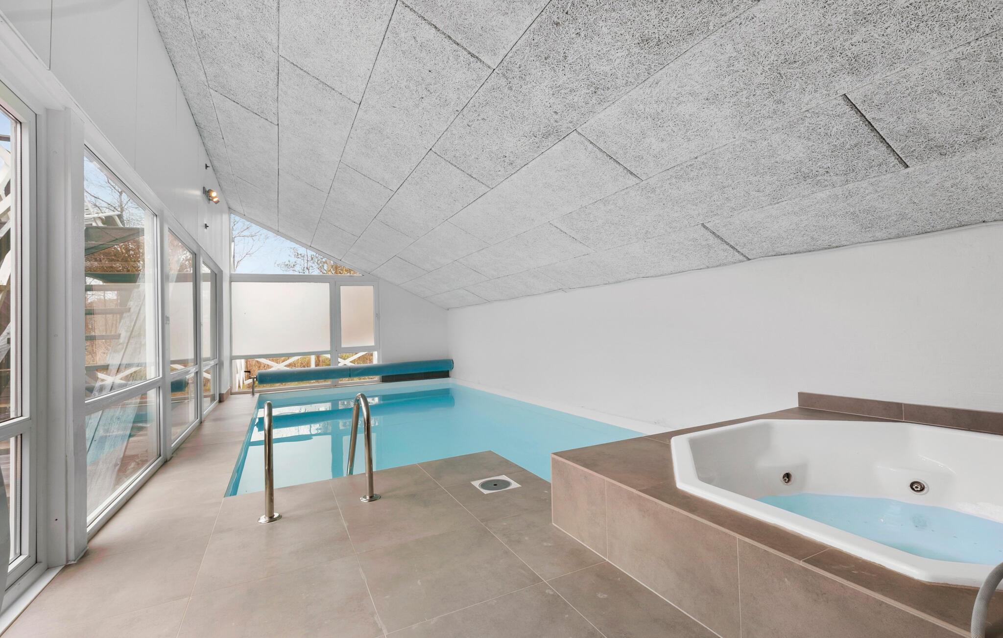 Rummeligt feriehus ved Øer Strand med pool, spabad, sauna og havudsigt, perfekt til familieferie på Djursland.
