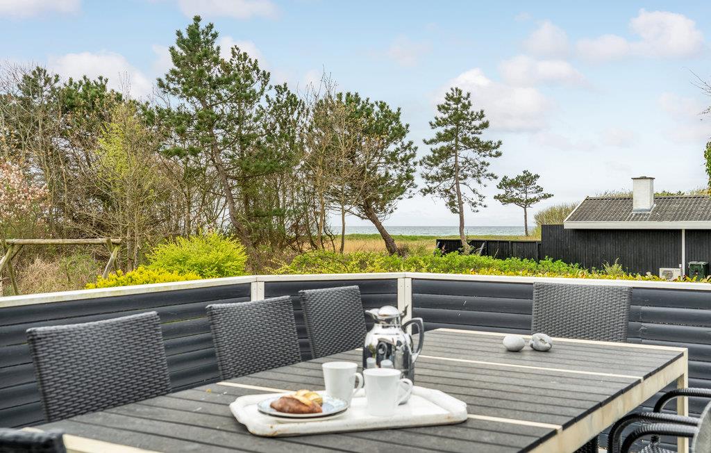 Charmerende sommerhus på Øer Strand med jacuzzi, åben terrasse og panoramaudsigt over vandet.