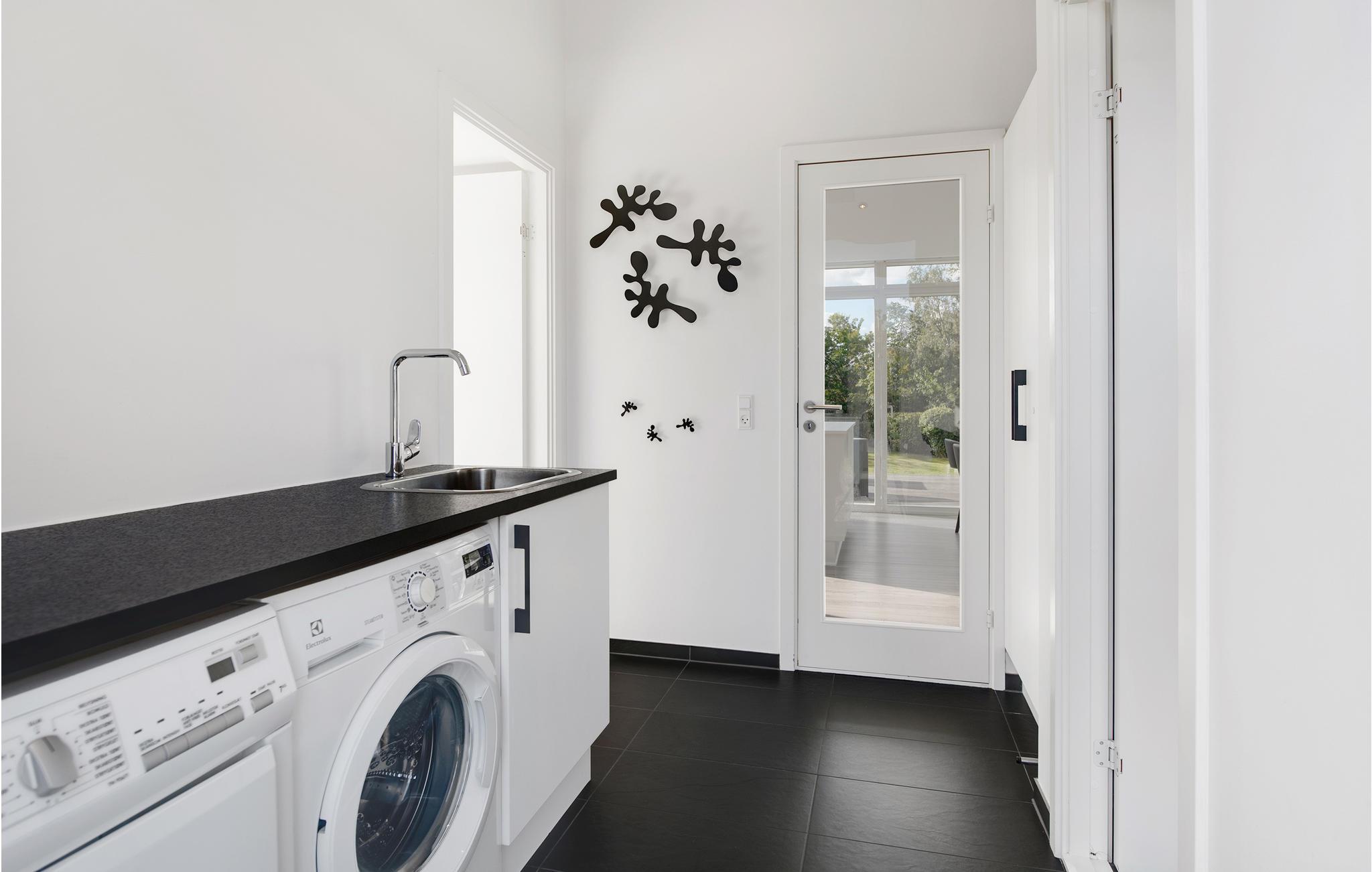 Velkommen til dette eksklusive feriehus, der garanteret tilbyder dig en fantastisk ferie. Inde i huset kan du forvente en lys og moderne atmosfære med masser af dagslys og moderne møbler i skandinavisk stil. Takket være de store vinduer har du en smuk udsigt over haven og grønne områder fra den åbne stue og spiseplads. Takket være det åbne køkken kan du være sammen med resten af familien mens du laver mad og diskutere dagens begivenheder.