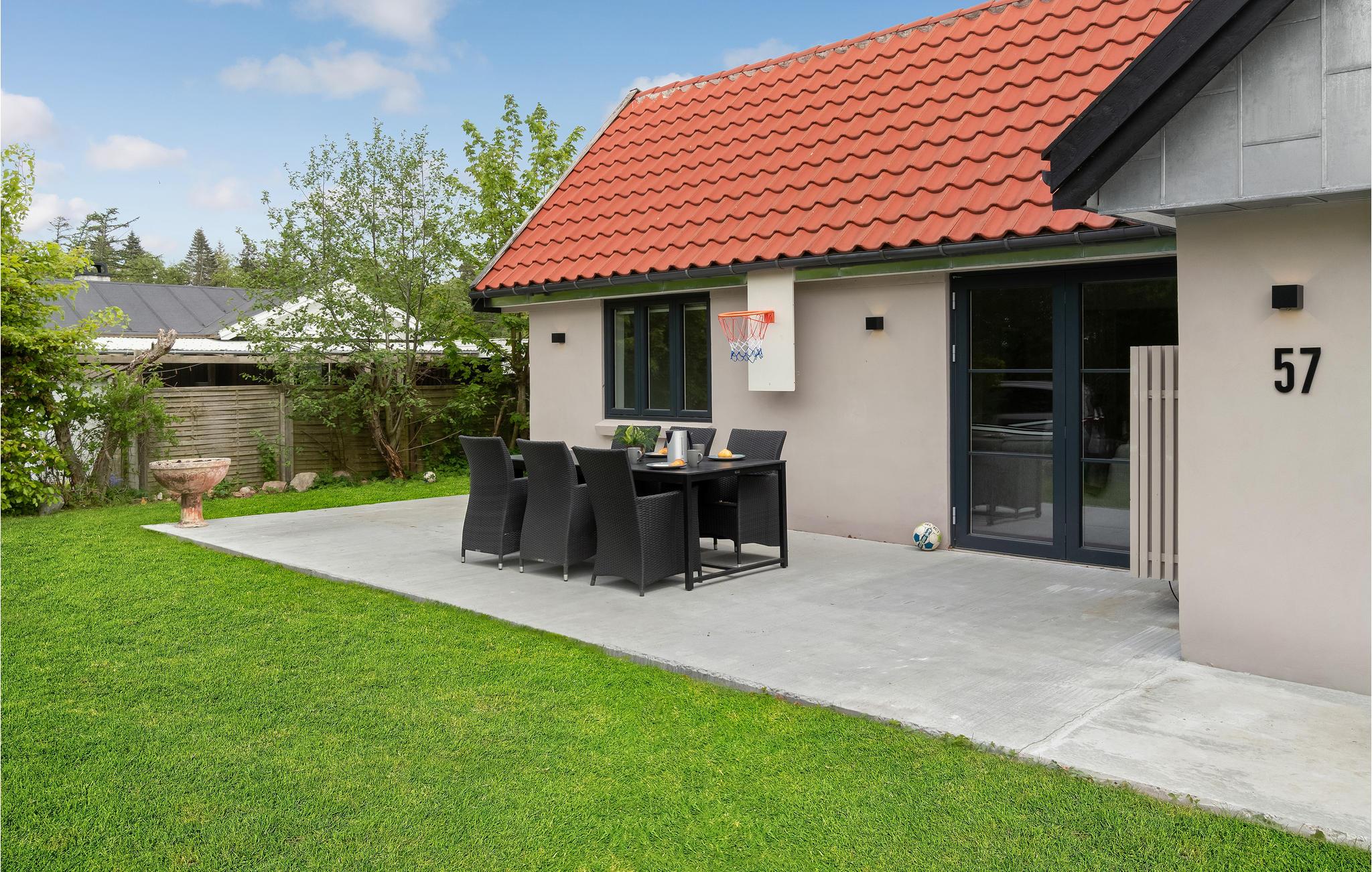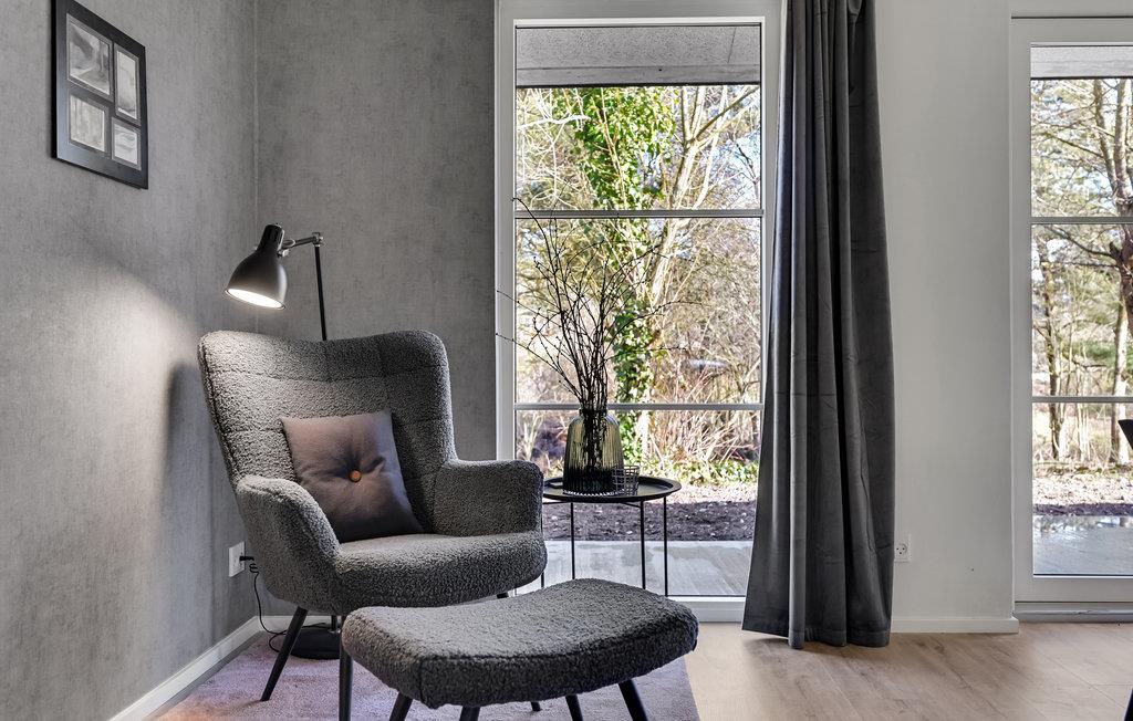 Hvis I drømmer om at lade op i naturen, og samtidig ikke vil undvære komfort, så er dette hus helt oplagt. Huset består af lyse rum med udsigt til haven, og indretningen er stilren og rolig. Sæt jer med dagens måltider, mens I kigger ud over haven og snup en rask dyst ved pool- eller bordtennisbordet, når I ikke er på farten. Efter en lang dag med strandliv, vandreture eller mountainbikekørsel kan I nyde en rolig pause i saunaen eller sætte jer i skæret fra ilden i brændeovnen og snakke om dagen, der er gået.