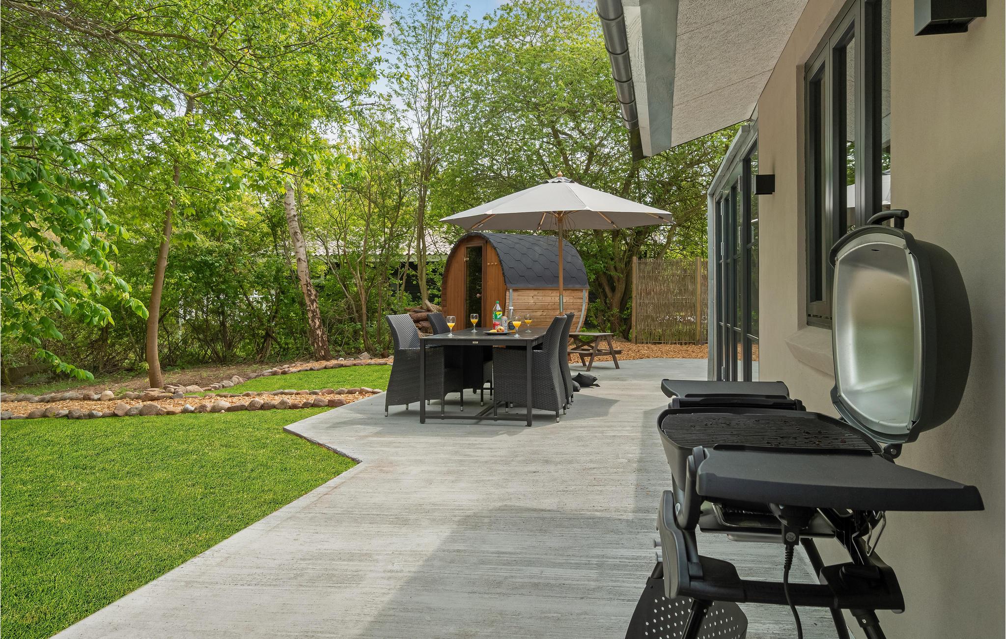 I haven er der gode rammer til at nyde solen. Se børnene spille fodbold, mens I læner jer tilbage med en god kop kaffe på terrassen. Afrund dagen med en lækker grillmiddag og forsæt aftenen udendørs, indtil tusmørket falder på.