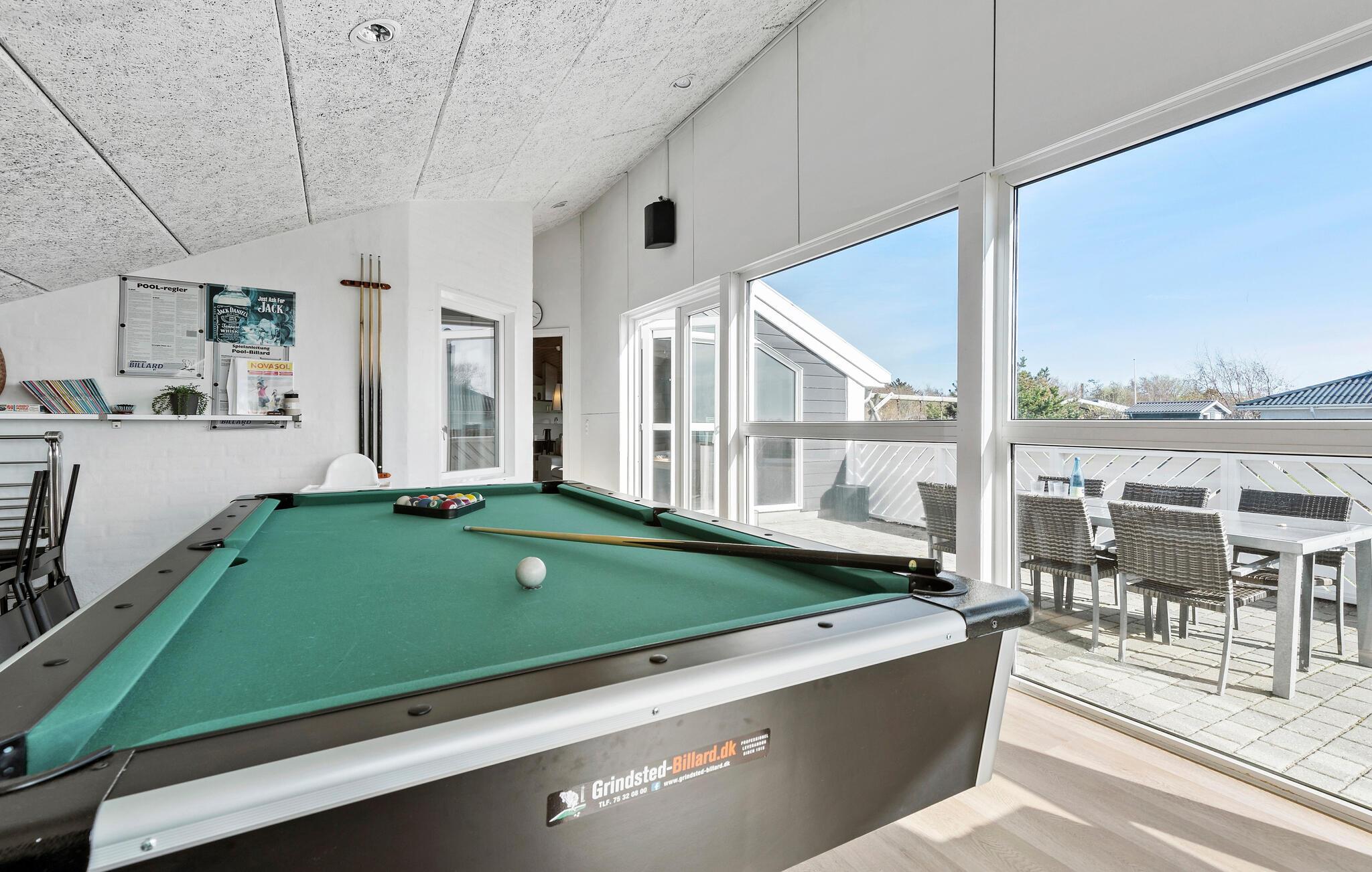 Dette flotte feriehus ligger på en af de mest attraktive grunde på Øer, i første række til havet og med en fantastisk flot panoramaudsigt. Området byder på en smuk natur, der indbyder til udendørs aktiviteter og der er kun kort afstand til den smukke gamle by Ebeltoft, som absolut bør opleves. Huset, der er opført i sten og træ, har store vinduespartier, der gør det lyst og venligt og giver en god kontakt til naturen udenfor. I det store aktivitetsrum kan I tage et spil bordfodbold og pool. Ved siden af aktivitetsrummet ligger husets fire personers spabad. Køkkenet er veludstyret med alle hårde hvidevarer. Huset byder også på en lille hems, hvor børnene kan hygge sig. De to badeværelser gør huset perfekt til to familier.
