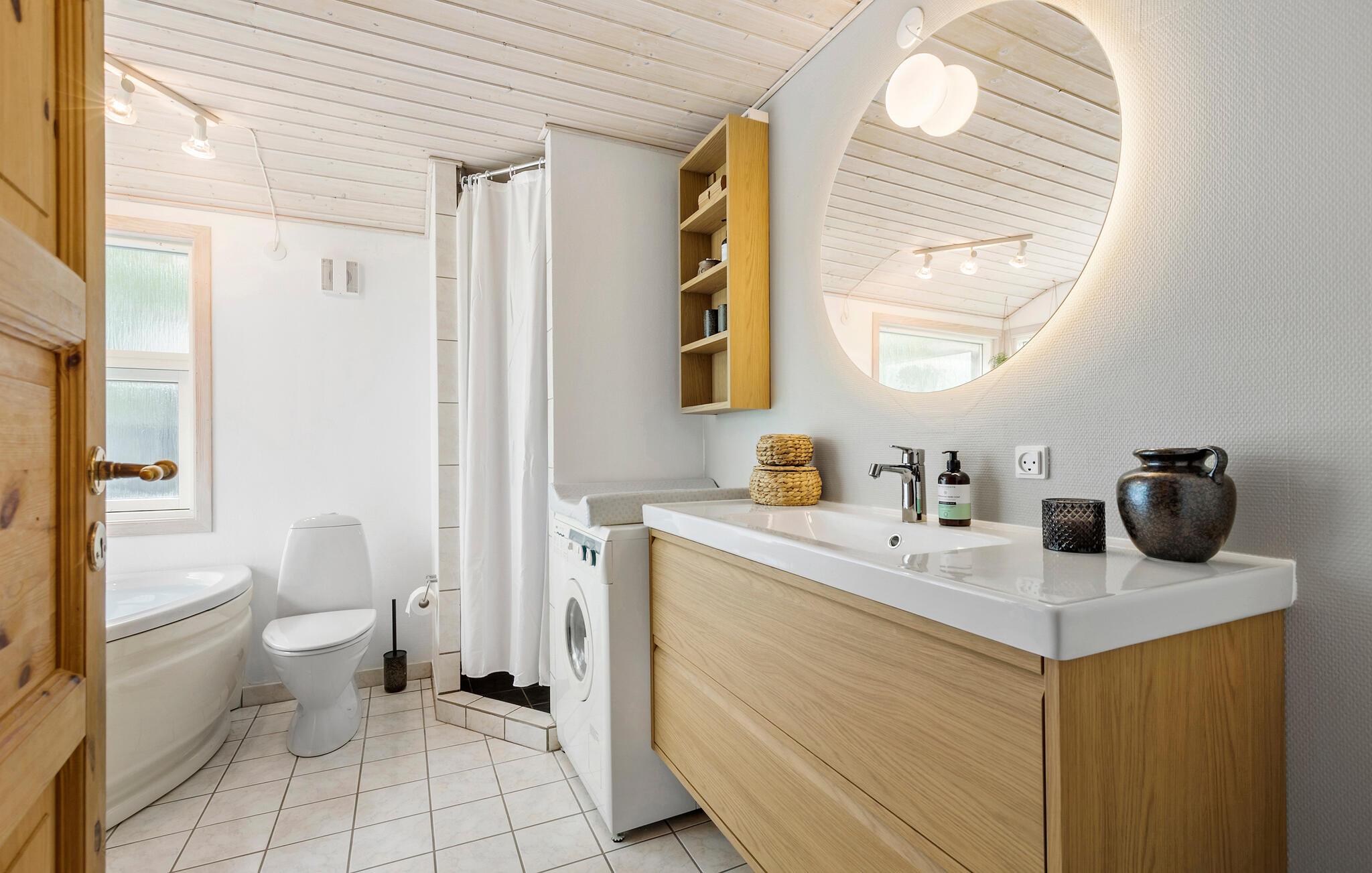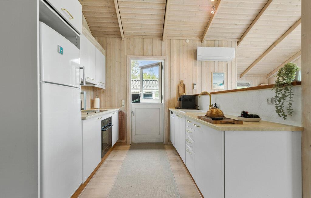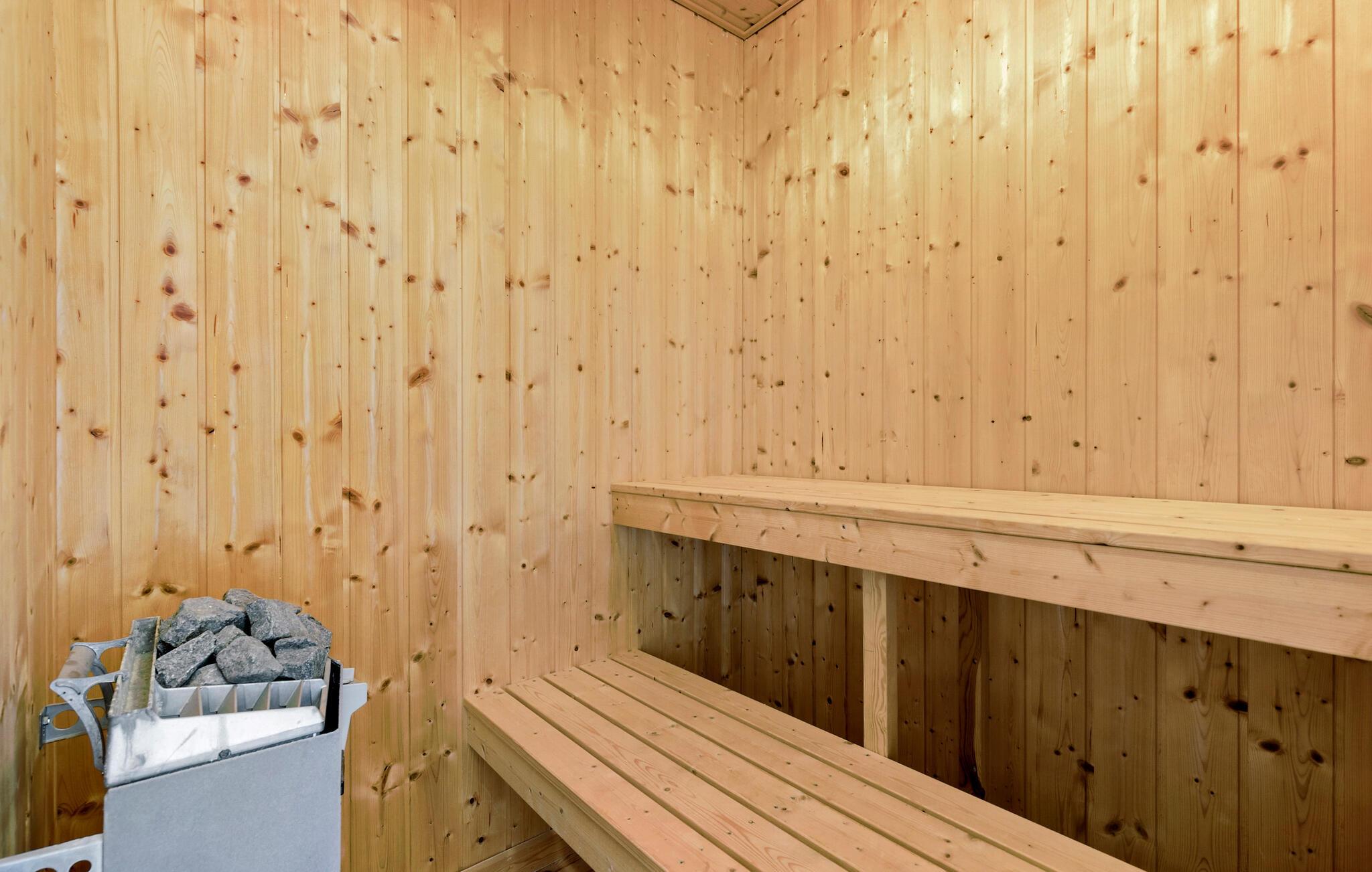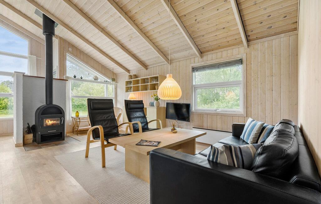 Glæd jer til familiesjov og afslapning i jeres indbydende hus. Det lyse træ, brændeovnen og de store vinduer skaber sammen med de behagelige møbler en hyggelig atmosfære. Nyd jeres feriedage i ro og mag, lav mad sammen, og oplev jeres lille wellnessområde på badeværelset, hvor et spabad og en sauna venter på jer.