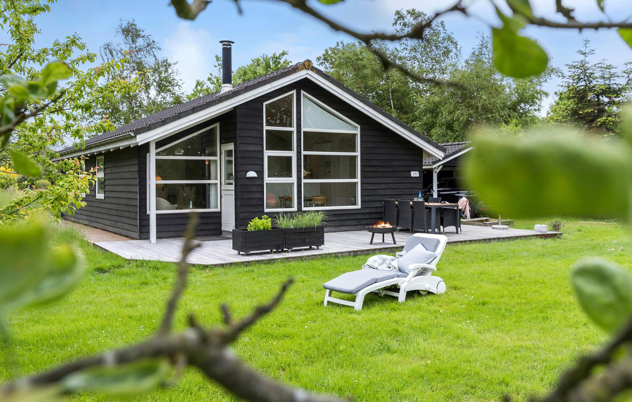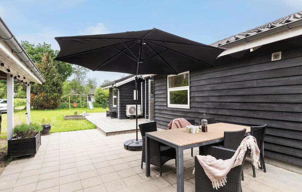 Hyggeligt og lyst feriehus nær Øer Strand med wellness, stor terrasse og aktiviteter for hele familien.