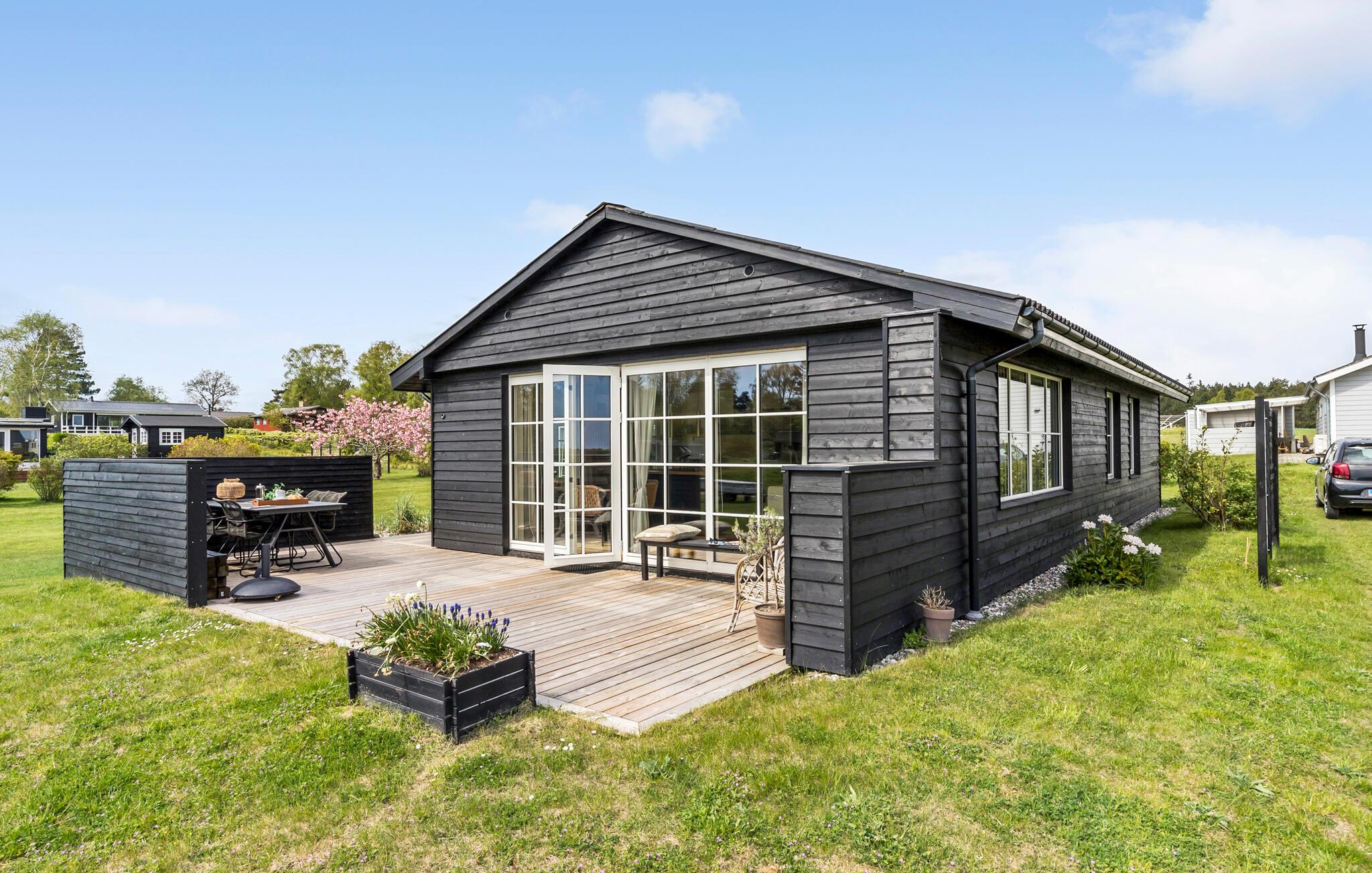 Moderne feriehus ved Ebeltoft med stor terrasse og tæt på strand.