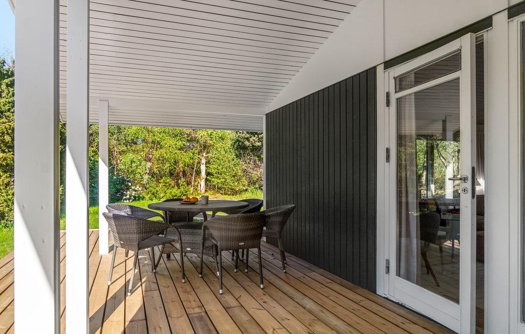 Den delvist overdækkede, store træterrasse vil være et dejligt sted til kortspil og hyggelige familiemåltider. Nyd solen på liggestolene, mens jeres børn leger i haven. Om morgenen kan I gå de få meter til den familievenlige sandstrand, hvor I kan bade og lege.