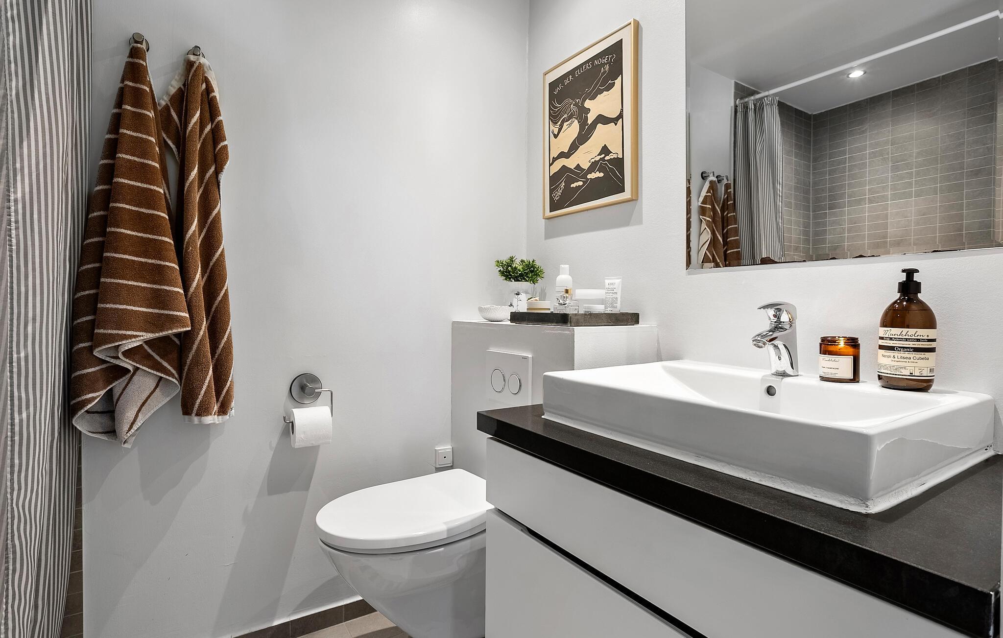 Badeværelse (nr. 1) - WC. Varmt og koldt vand. Bruser
