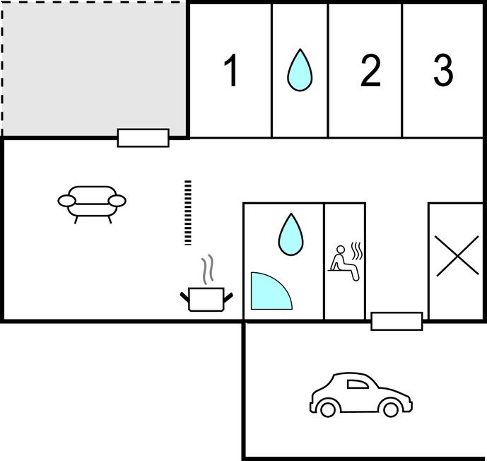 Badeværelse (nr. 1) - WC. Varmt og koldt vand. Bruser