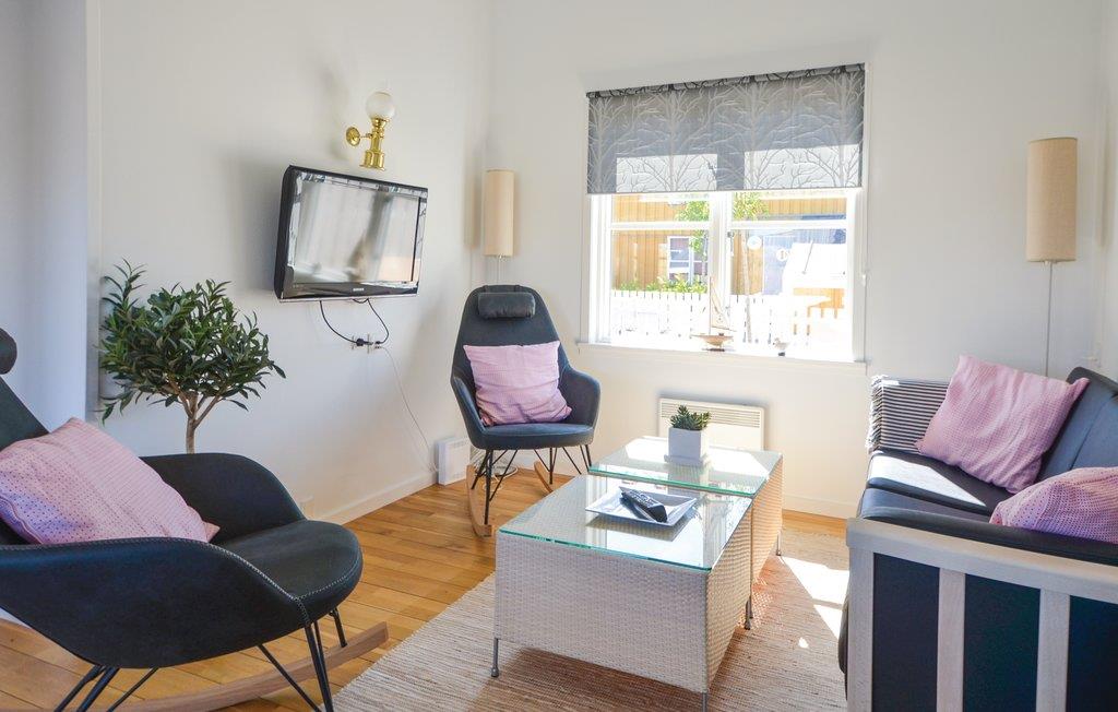 Flot og veludstyret ferielejlighed i Øer Maritime Ferieby nær Ebeltoft med adgang til mange aktiviteter og naturskønne omgivelser.