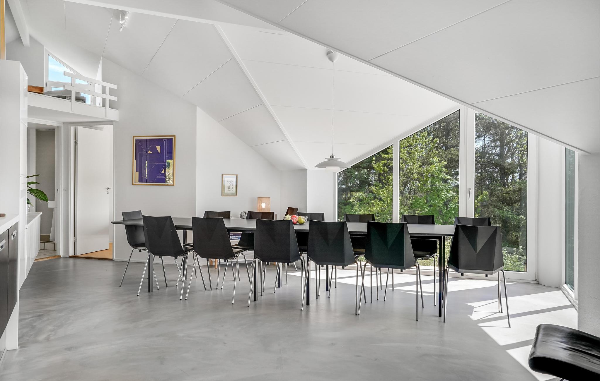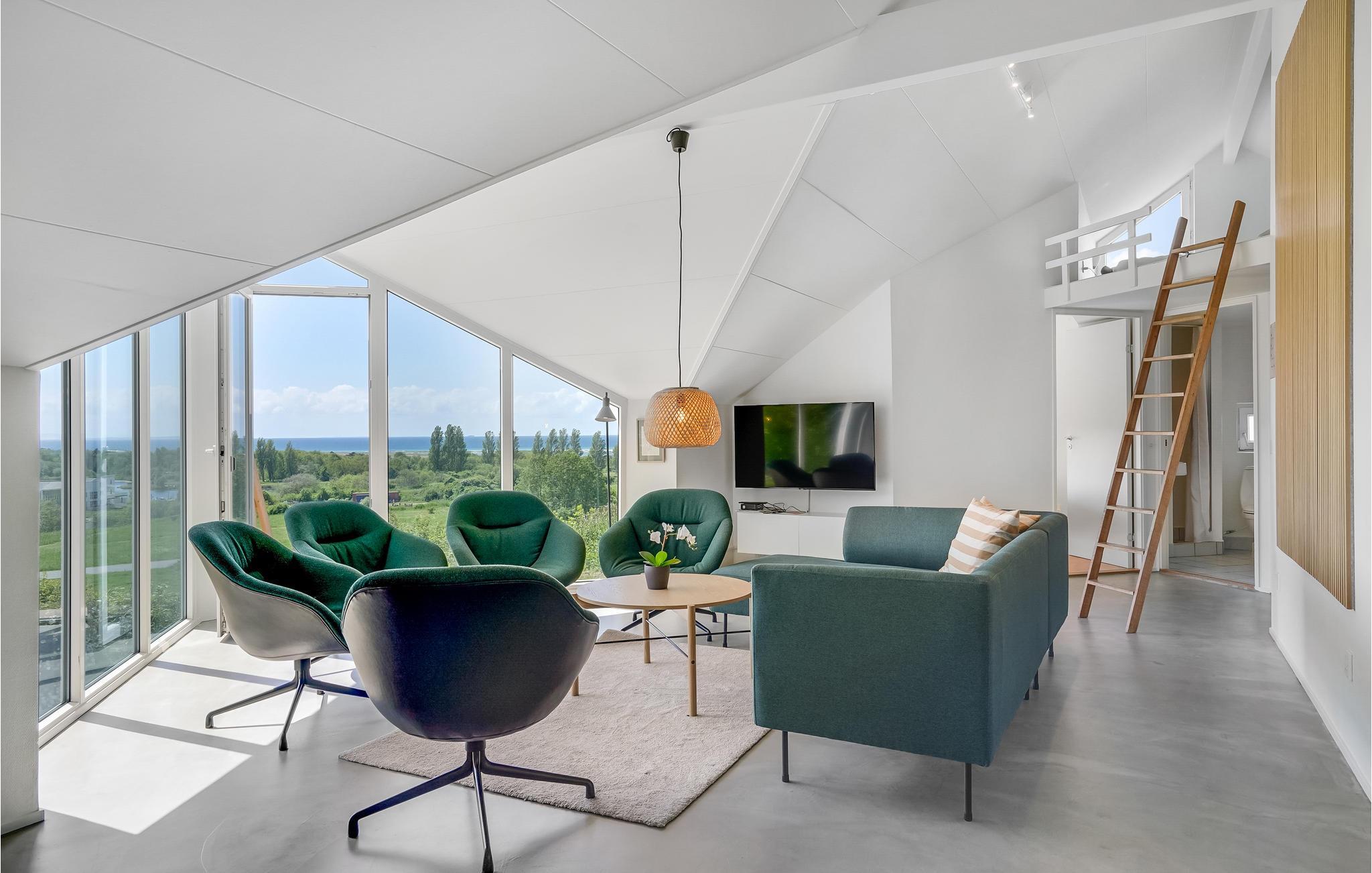 Allerede ved ankomsten til denne arkitektoniske perle, får I lyst til bare at nyde udsigten. Feriehuset er beliggende højt i området og har en fantastisk udsigt over havet og ud over den maleriske Øer Maritime Ferieby. Huset rummer alle muligheder, uanset årstiden, for at holde en aktiv ferie, flere familier sammen. Huset er rummeligt og hele nederste plan er forbeholdt de aktive, her finder I bordtennis, fodboldspil samt det dejlige poolområde med pool, stort spabad og sauna. Huset er beliggende lige syd for Ebeltoft, ca. 5 min. i bil, og er et godt udgangspunkt for at besøge de forskellige attraktioner i det østjyske område. Gåafstand til stranden og gode naturområder lige uden for døren gør det nemt for en gå- eller løbetur i området..