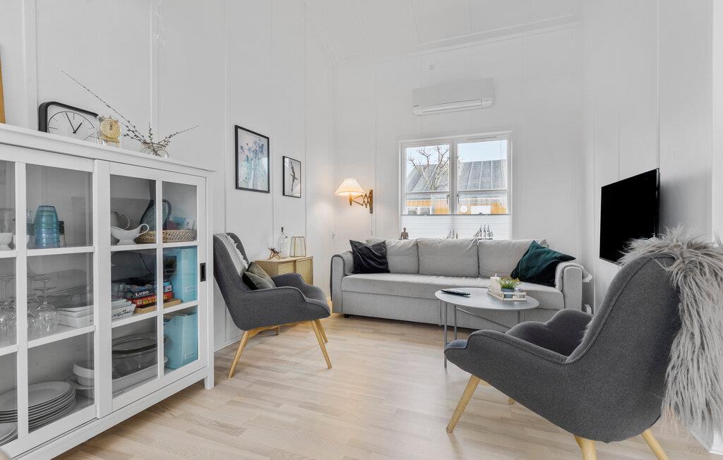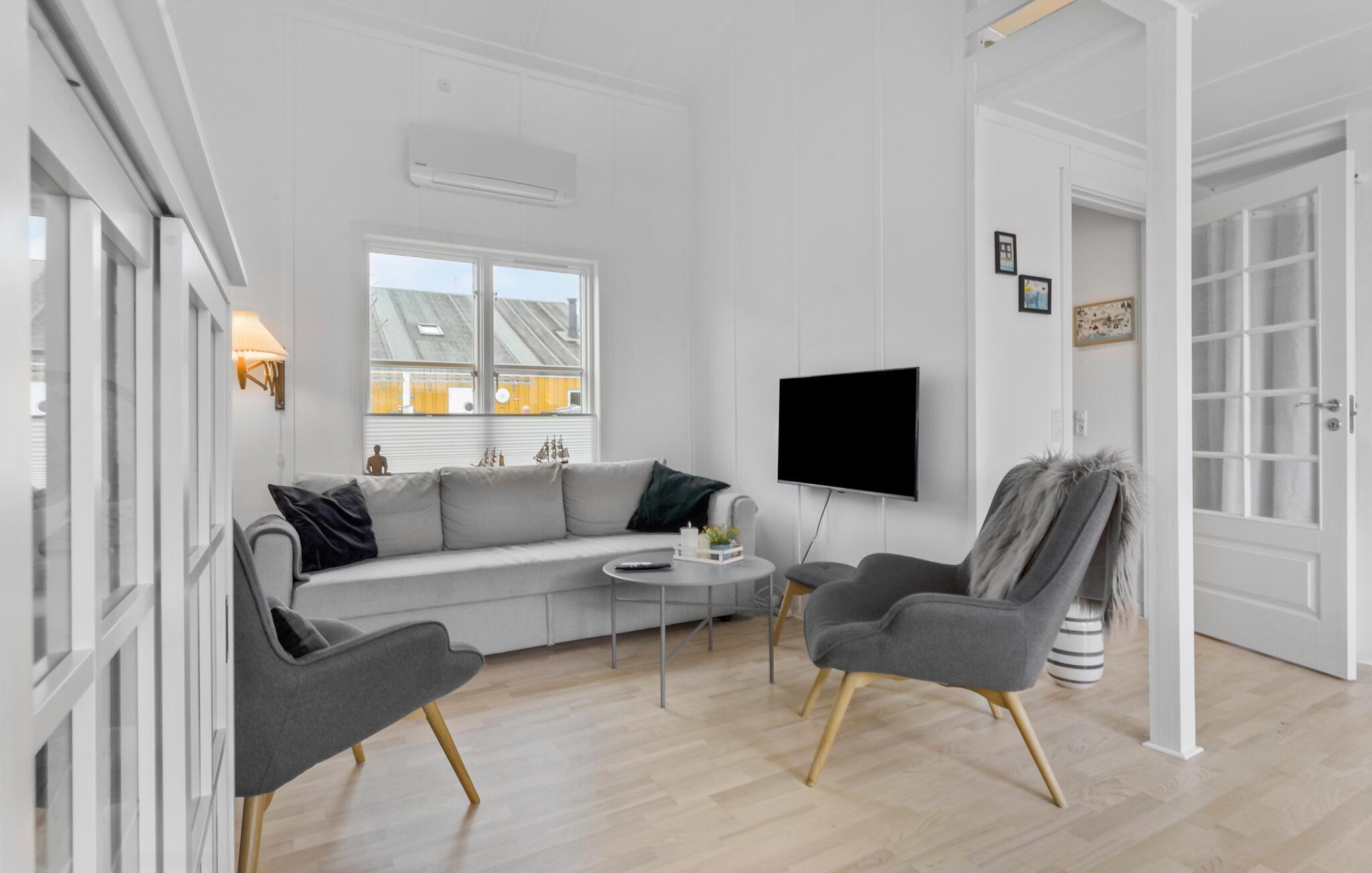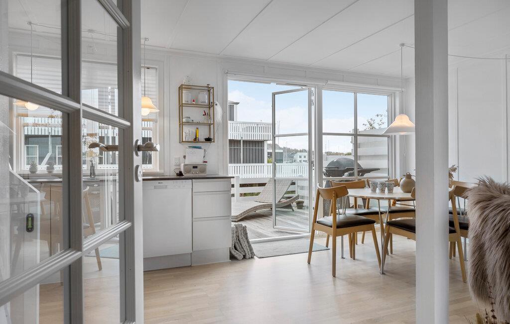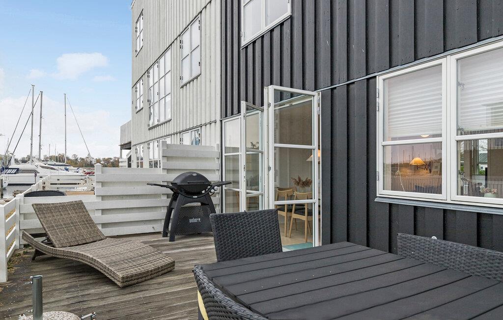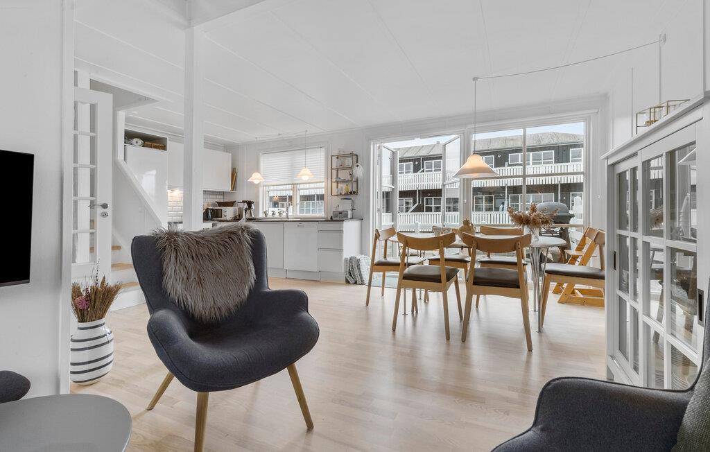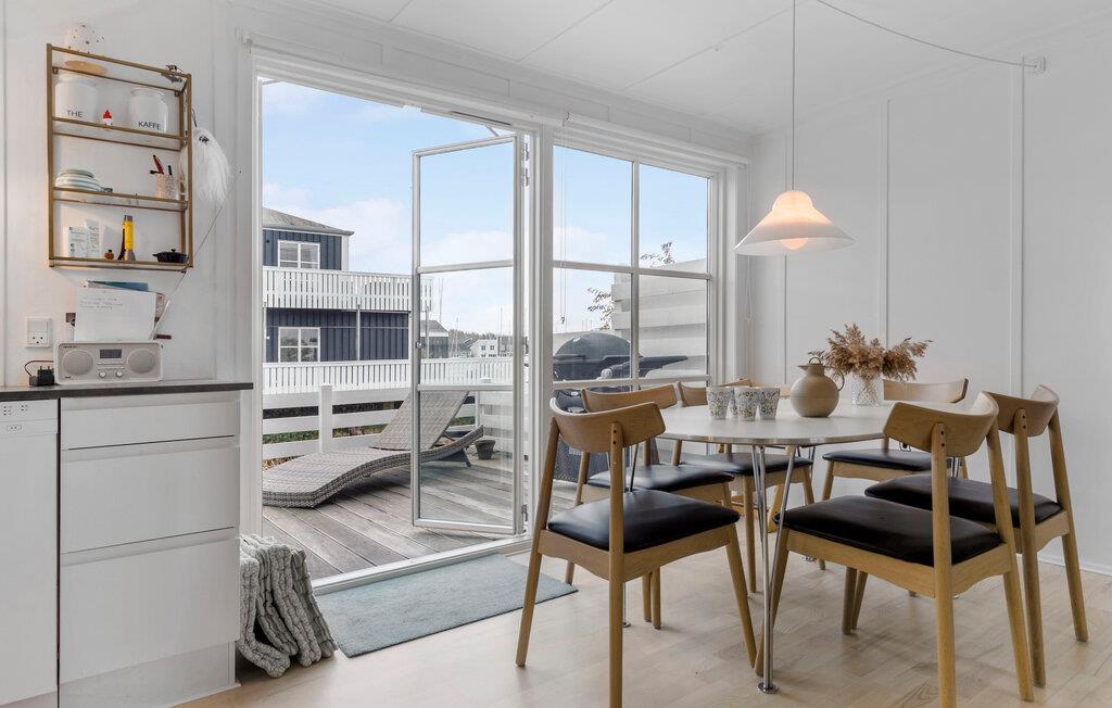 Jeres indbydende feriehus ved Øer Strand byder på to etager med masser af plads og en moderne, lys indretning, ideel til familier eller par, der ønsker at tilbringe afslappende dage sammen. Den åbne opholdsstue med spiseplads og køkken fører direkte ud til terrassen og skaber en luftig, indbydende atmosfære. På den indhegnede terrasse, udstyret med komfortable havemøbler, kan I nyde udsigten over bådene i havnen og starte dagen afslappet med en udendørs morgenmad. Udsigten over havnen inviterer jer til at lade sjælen finde ro og nyde den maritime atmosfære.