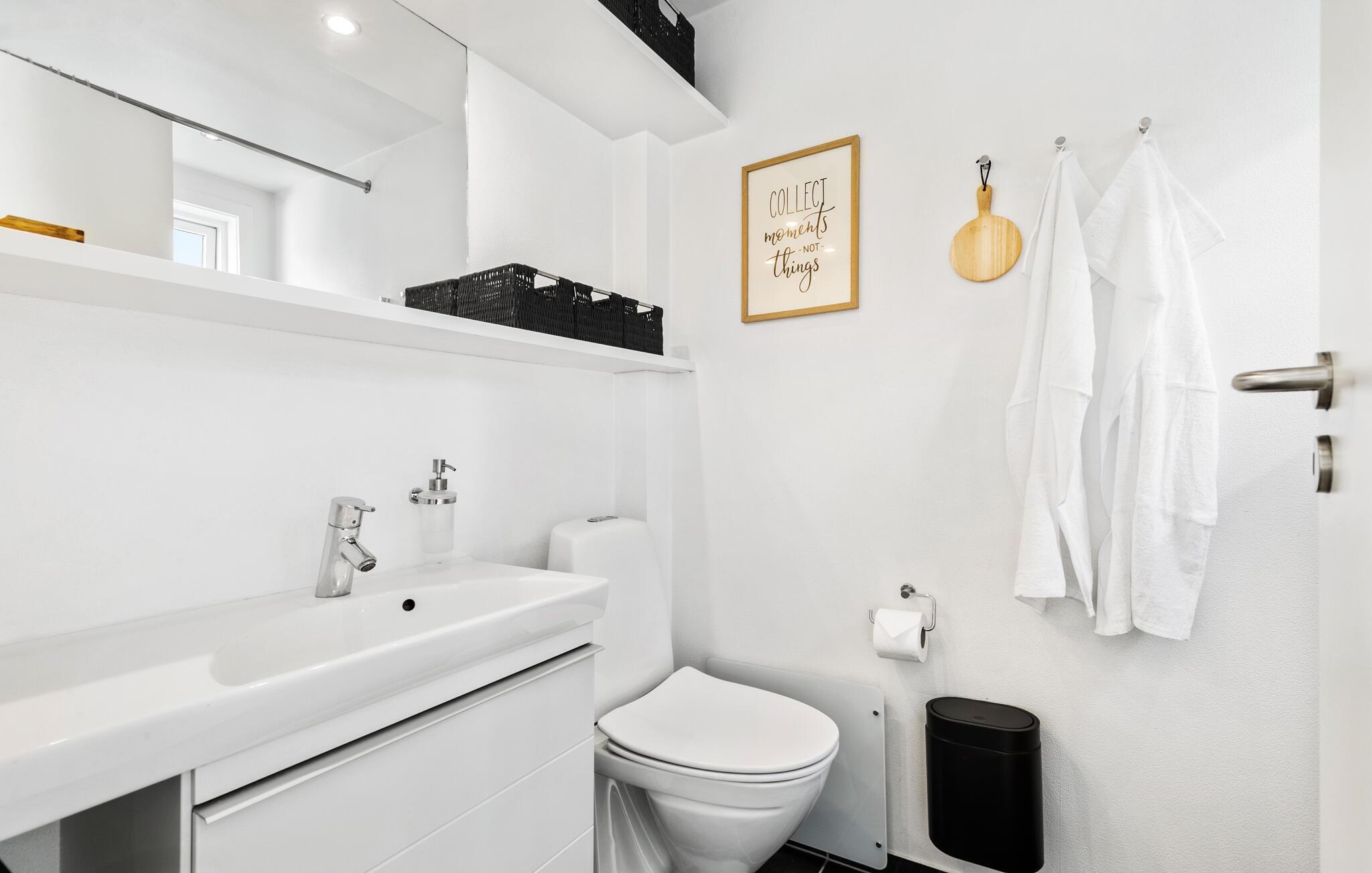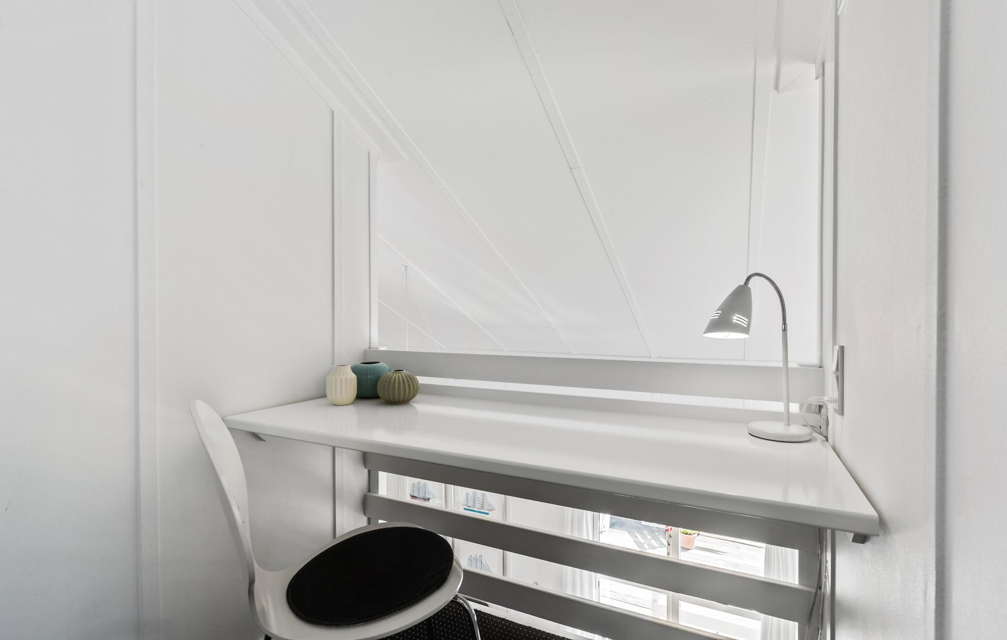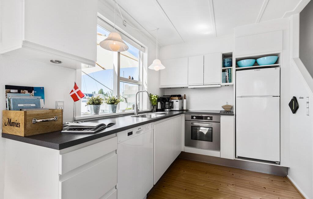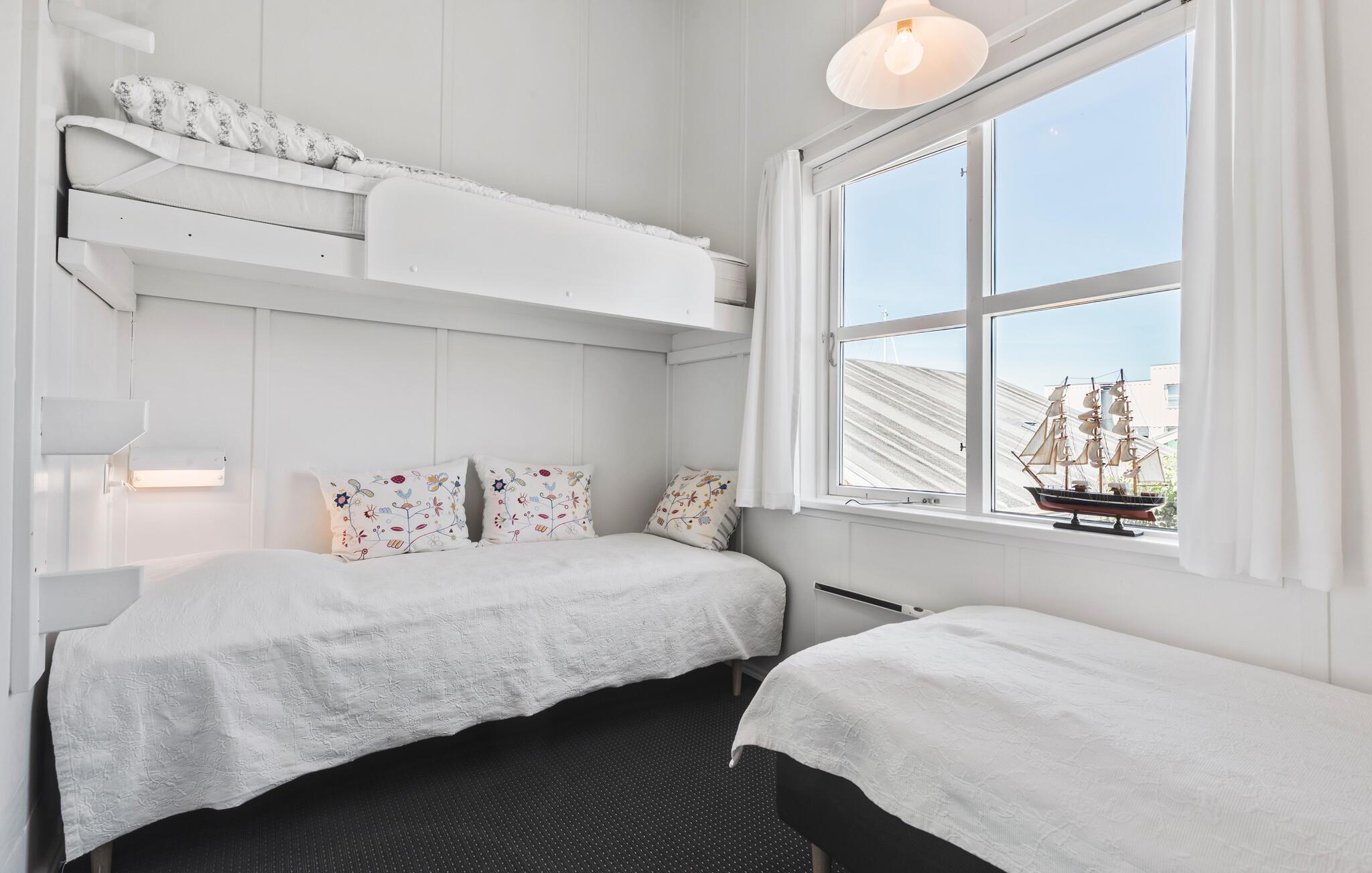 Feriehuset er indrettet med kvalitetsmøbler og sans for indbydende farver og sammensætning. Fra huset er der direkte udgang til en dejlig træterrasse, som er beliggende lige ud til det åbne havnebassin. Her kan solen og udsigten nydes det meste af dagen.