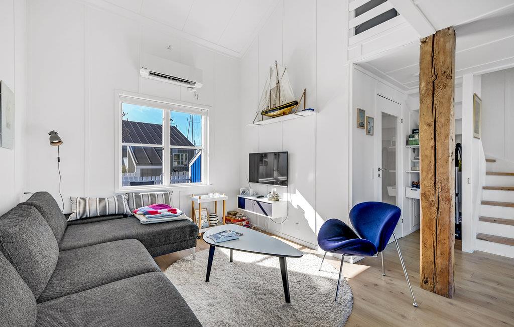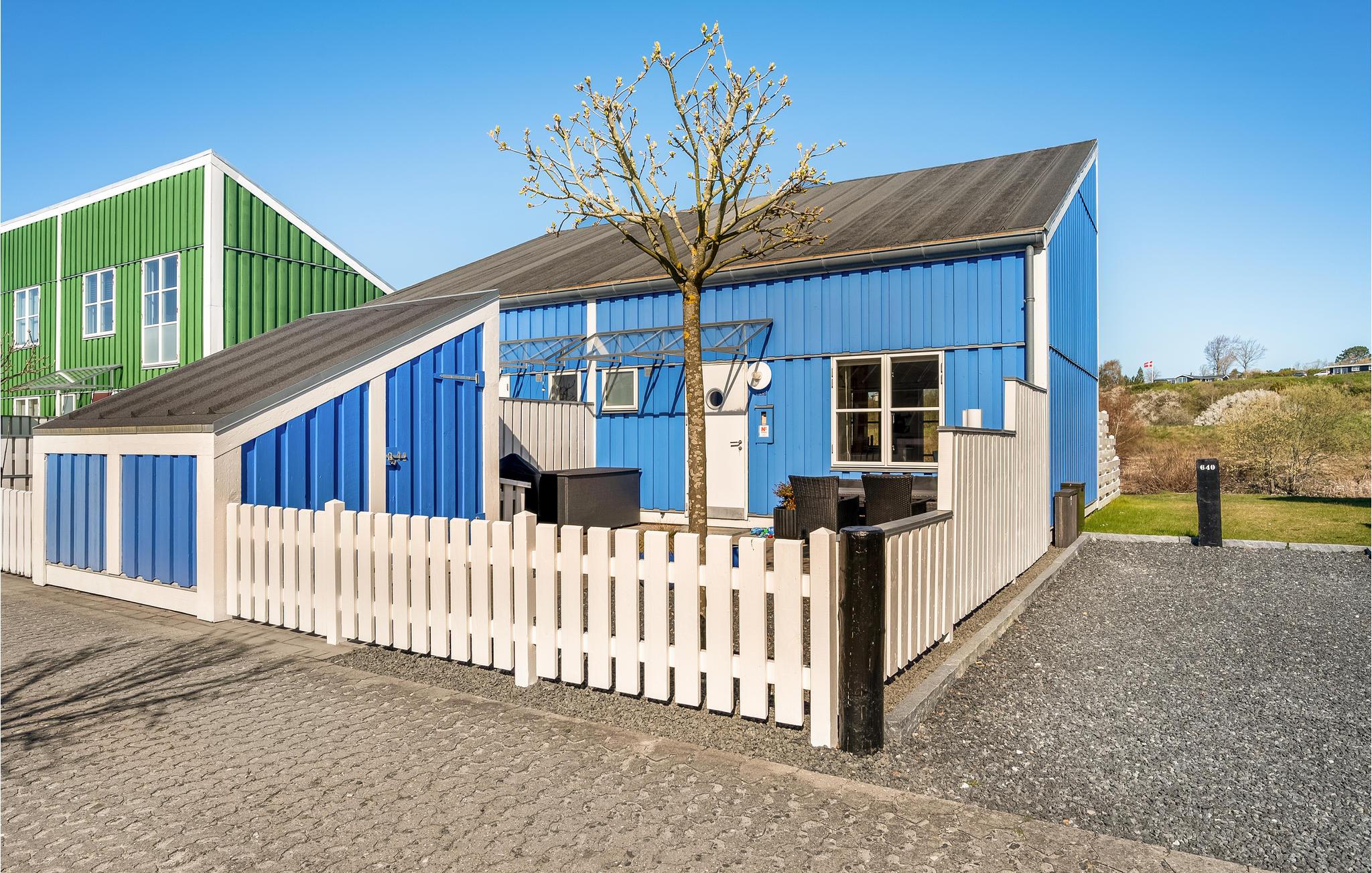 Velkommen til dette dejlige feriehus, der straks springer i øjnene takket være sin behagelige lyseblå farve. Indvendigt er huset også en fryd for øjnene. Det er rummeligt, lyst og elegant indrettet, og har udsigt til vand fra flere rum. Et højdepunkt er den store terrasse lige ud til vandet. Her kan I spise morgenmad, nyde solen og holde hyggelige grillaftener. Lige foran huset er der også en lille badebro, hvor der kan fortøjes padlebåde eller lignende. I har også en tennisbane lige uden for døren.
