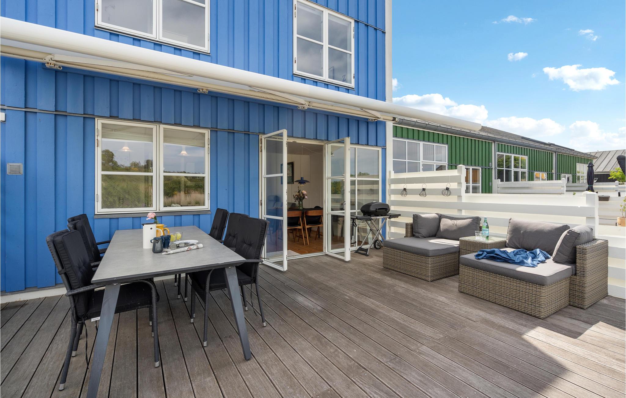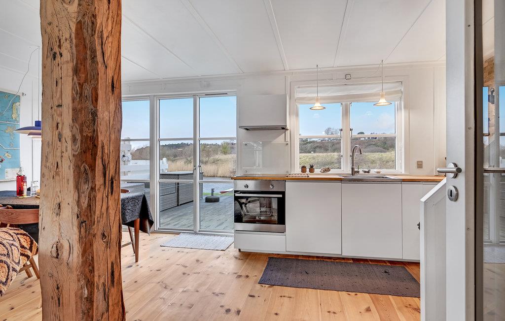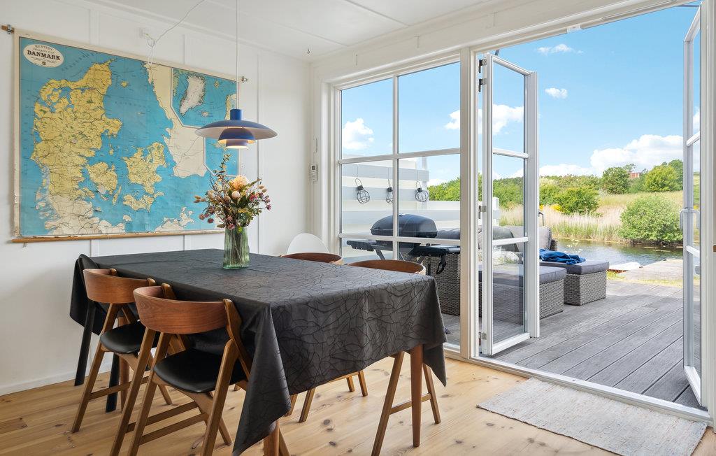 Kom til dette fantastiske feriehus med hele jeres familie eller venner og nyd en velkommen pause. Huset imponerer med sin indbydende, hjemlige indretning, det rummelige spisekøkken og frem for alt den store terrasse lige ved vandet. Stueetagen indbyder til at slappe af, lege og lave mad sammen. Spis en lækker morgenmad med udsigt over landskabet og planlæg jeres dag eller sæt jer sammen om aftenen for at lade dagen ende på smukkeste vis.