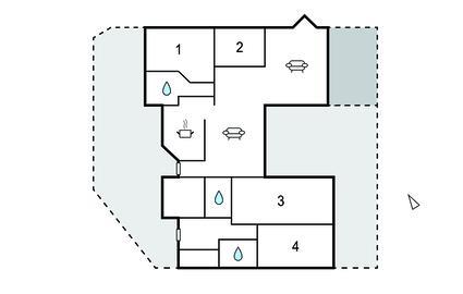 Badeværelse 6m2 (nr. 1) - WC. Varmt og koldt vand. Bruser
