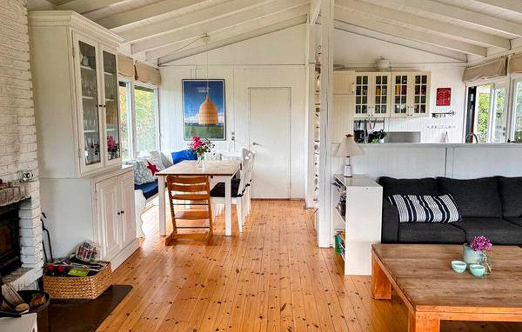 Dette feriehus lægger op til en afslappende ferie med en idyllisk beliggenhed ved Roskilde Fjord. Den komfortabelt møblerede opholdsstue er fyldt med lys takket være de store vinduer og udstråler en behagelig atmosfære. find jer godt til rette i sofaen eller slå jer ned ved spisebordet, mens I kigger ud i haven. Tilbered jeres måltider sammen på ingen tid i det åbne, praktisk udstyrede køkken.