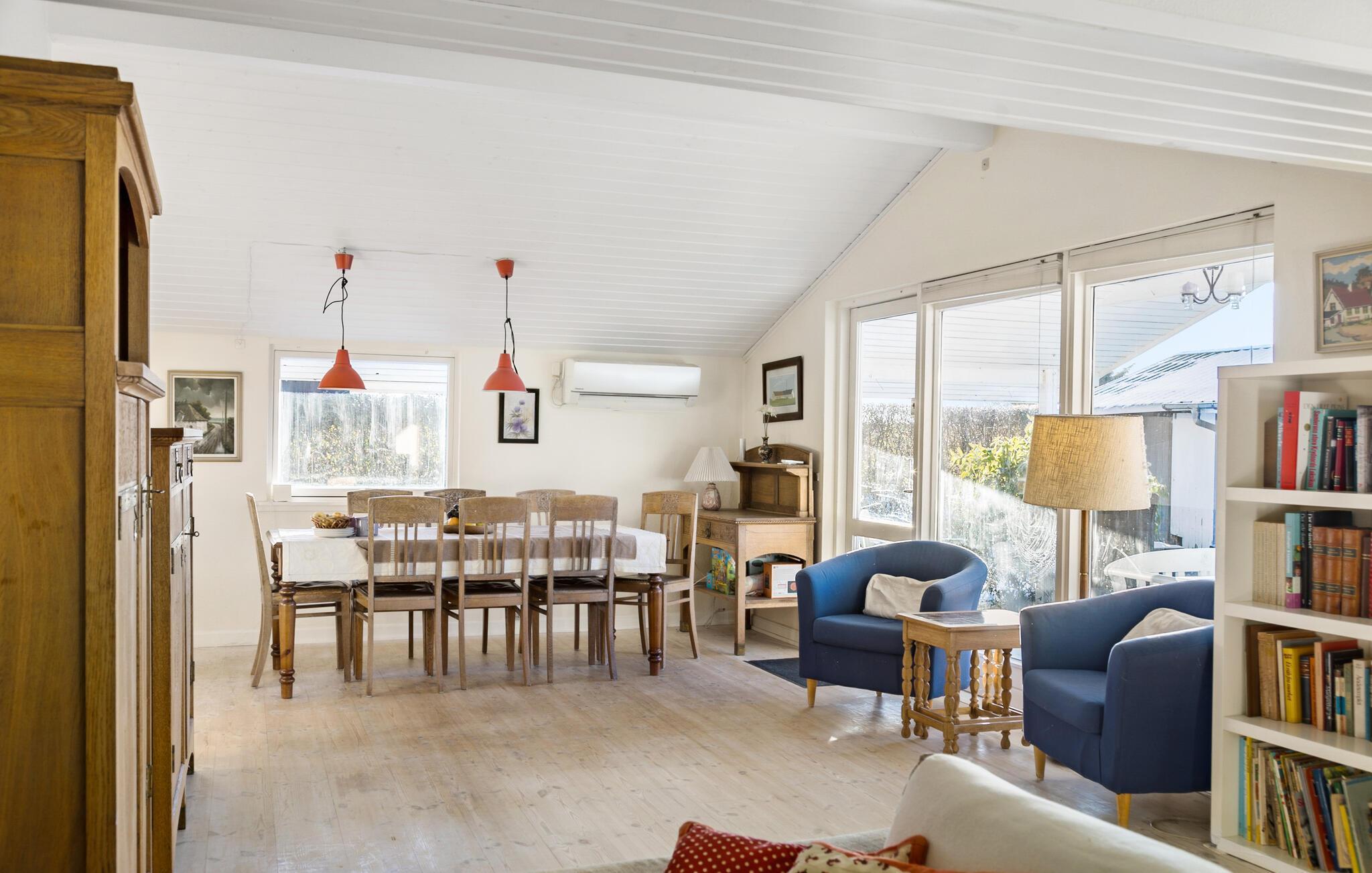 Velkommen til en lysfyldt oase med et stilfuldt, åbent køkken, der inviterer til fælles madlavning og til at nyde en lækker morgenmad eller en god middag. Tænd op i brændeovnen, og snup en spændende bog fra biblioteket, før I finder et hyggeligt sted i den komfortable stue eller holder en sjov spilleaften med hele familien.