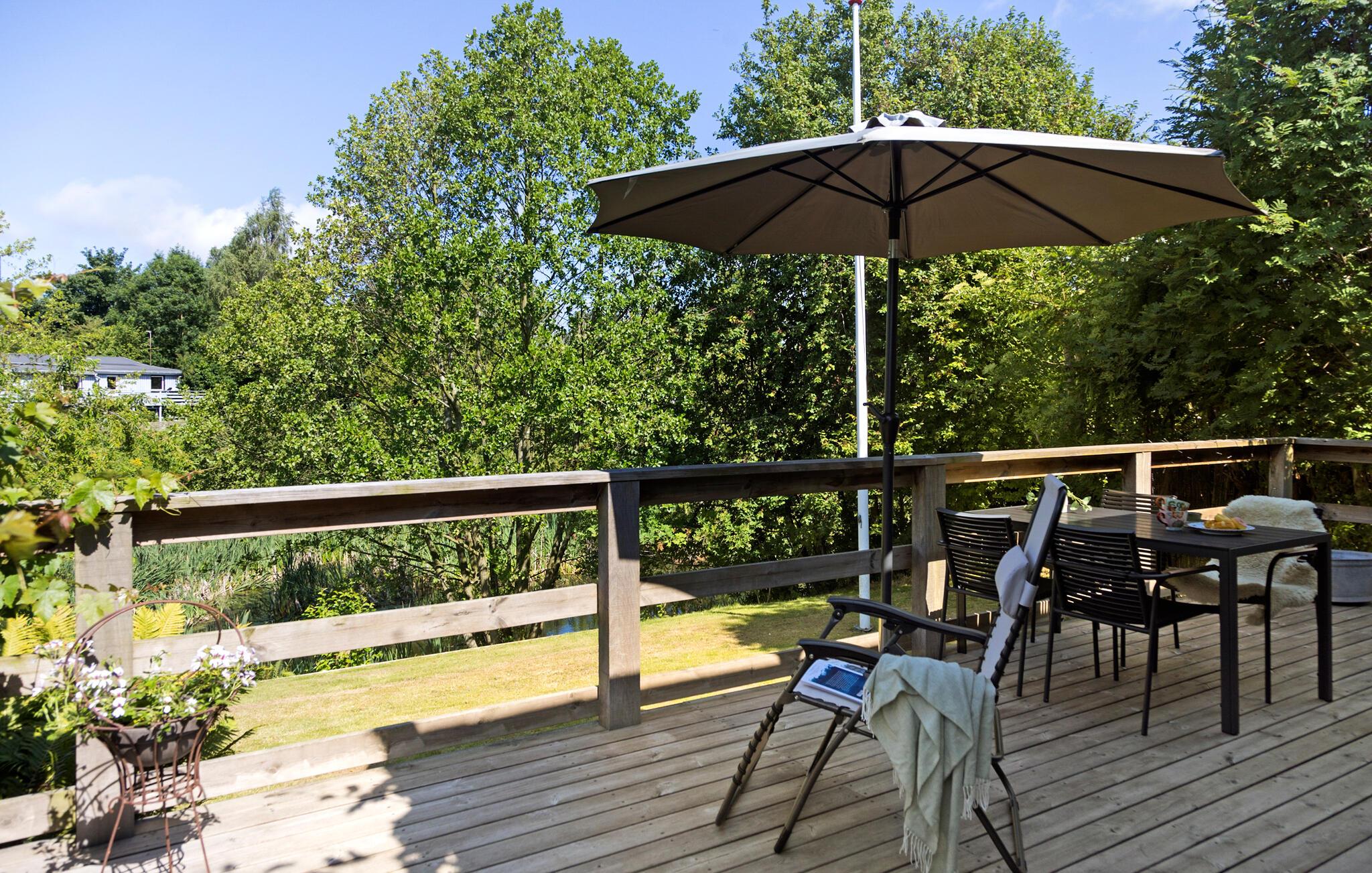 På varme dage kan I samles til morgenmad på den solrige terrasse. Sæt jer derefter til rette med en god bog eller se på fugle- og andelivet ved søen. Den skønne natur rundt om grunden har i sig selv en beroligende effekt.