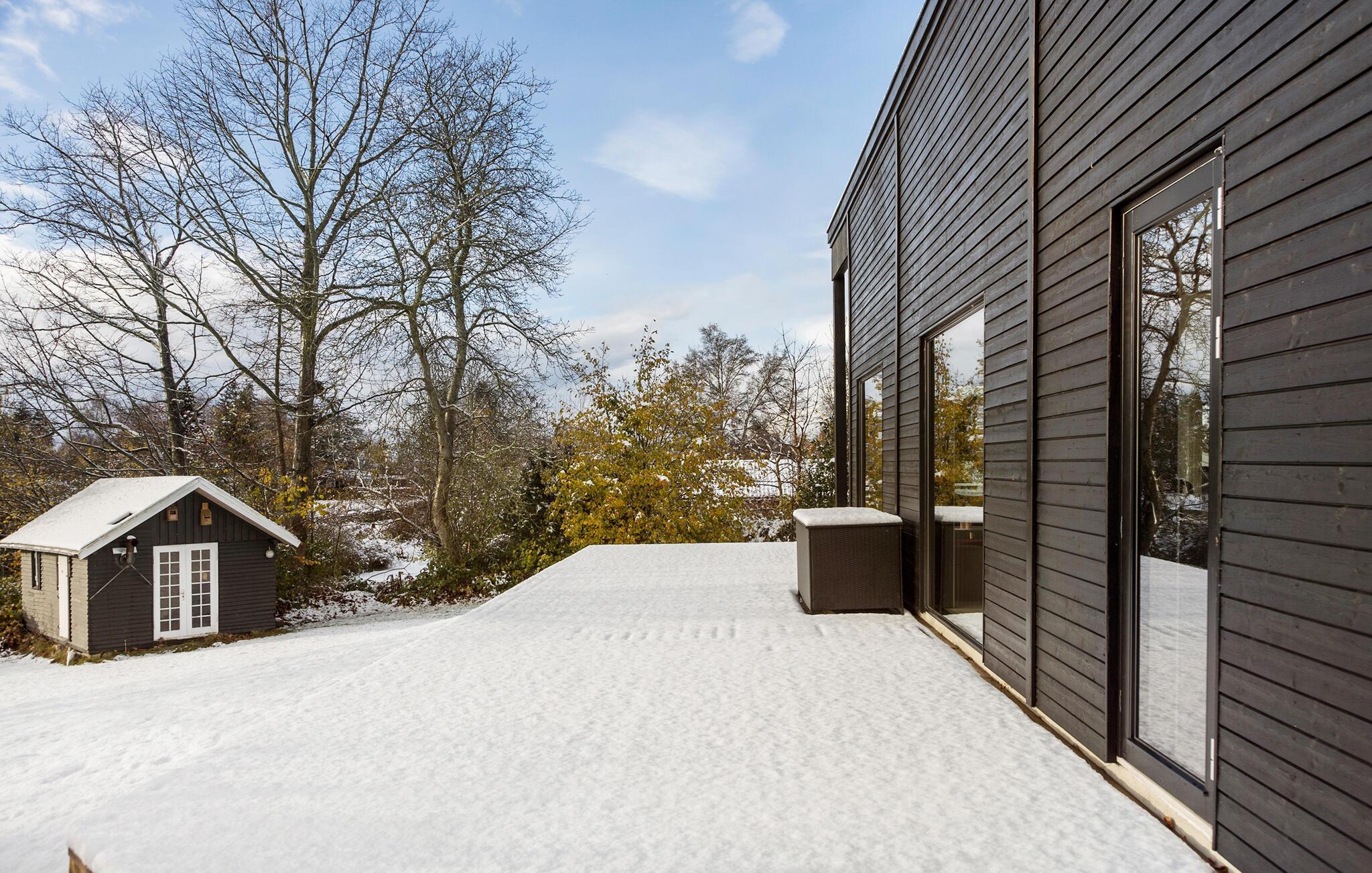 Moderne feriehus med stor terrasse og have tæt på Roskilde Fjord og Ølsted Strand.