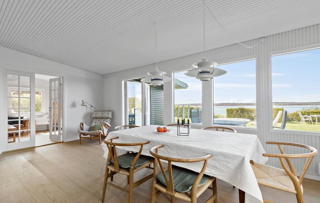 På en stille vej i første række til fjorden byder dette feriehus jer velkommen til skønne feriedage. Indenfor venter jer et stilfuldt interiør med en behagelig atmosfære, der lægger op til afslapning og velvære. Huset er indrettet med to soveværelser med dobbeltsenge, hvoraf det ene afskærmes med et forhæng. Glæd jer til god nattesøvn og til at vågne op med den skønneste udsigt til fjorden.