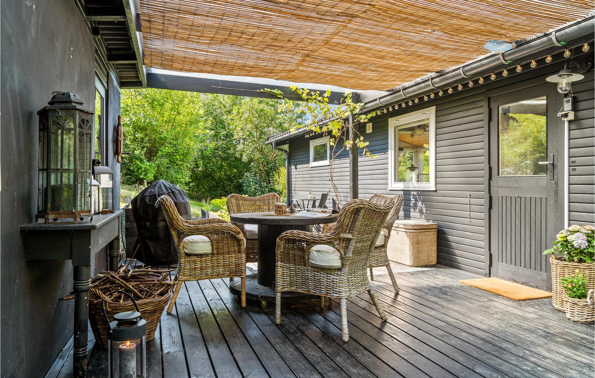 Charmerende sommerhus ved Ølsted Strand med overdækket terrasse og tæt på Roskilde Fjord.
