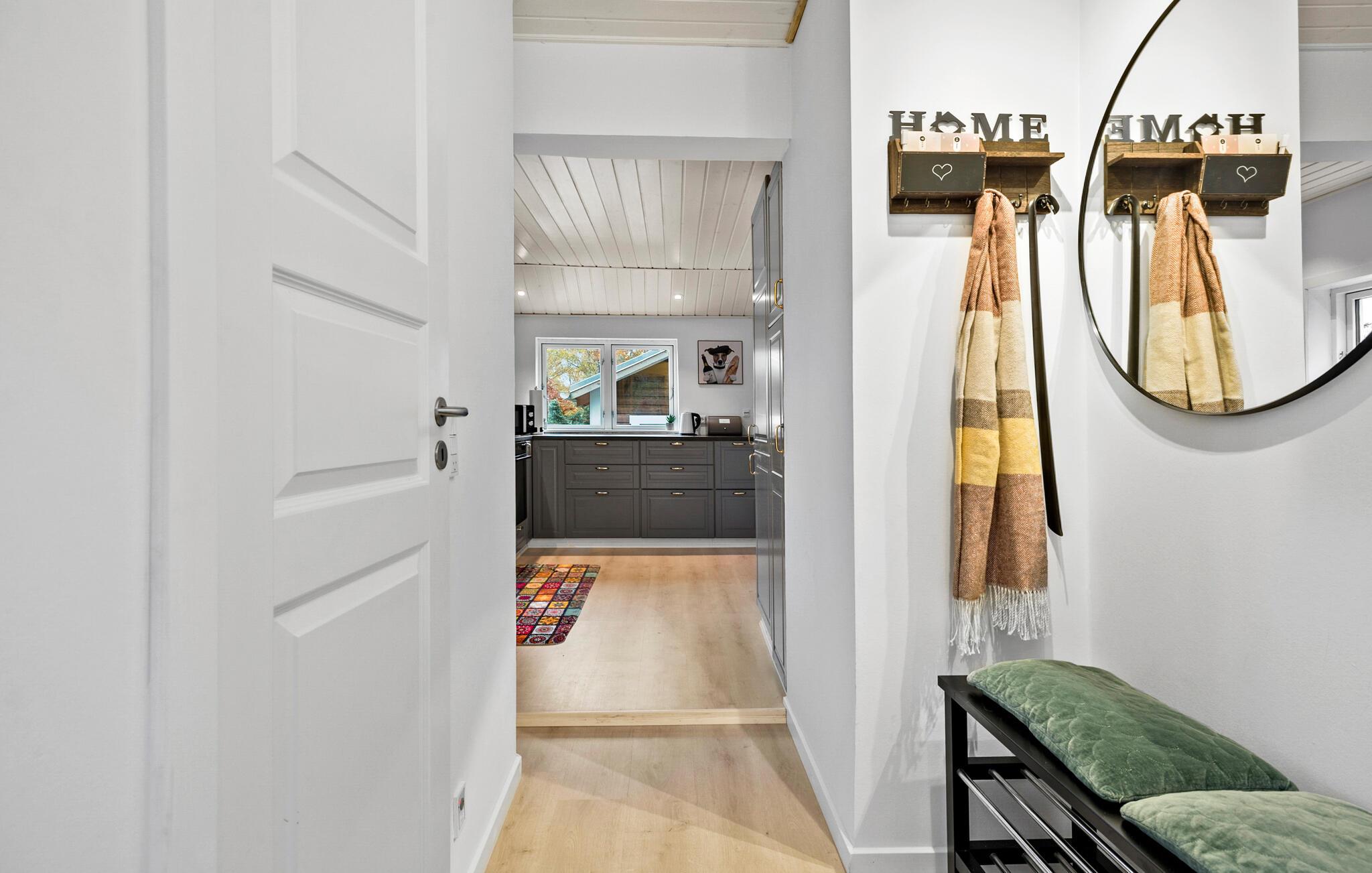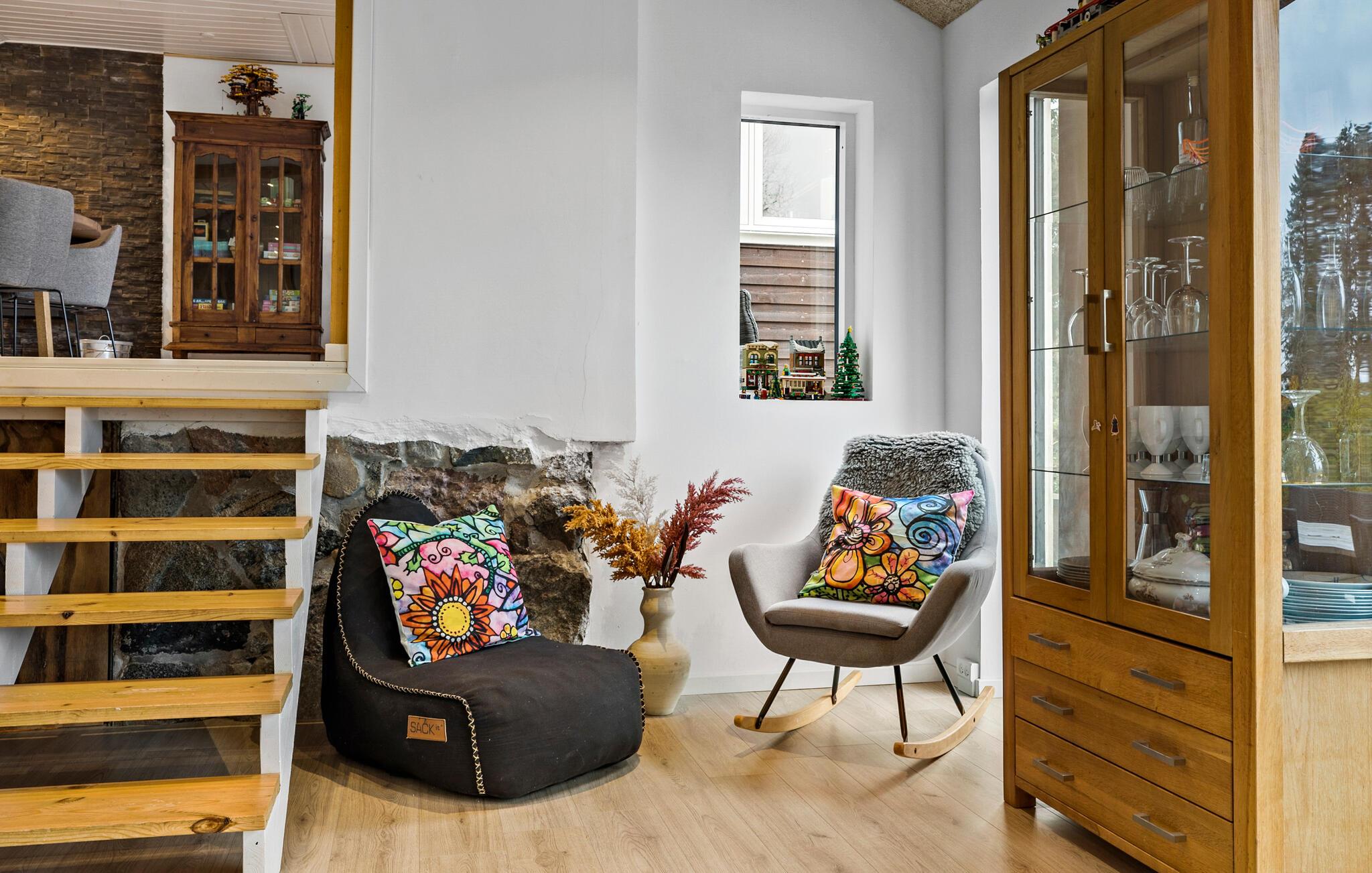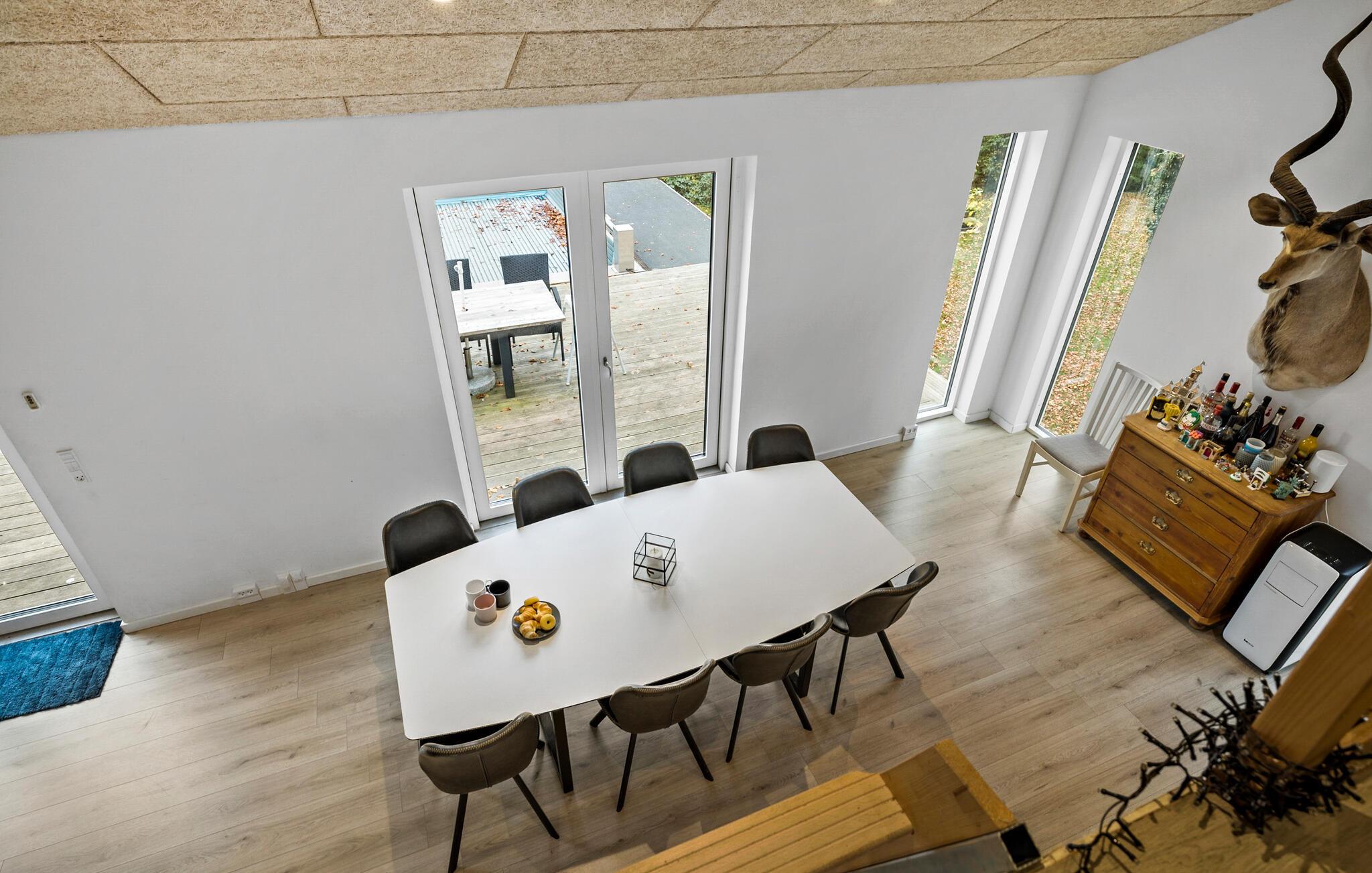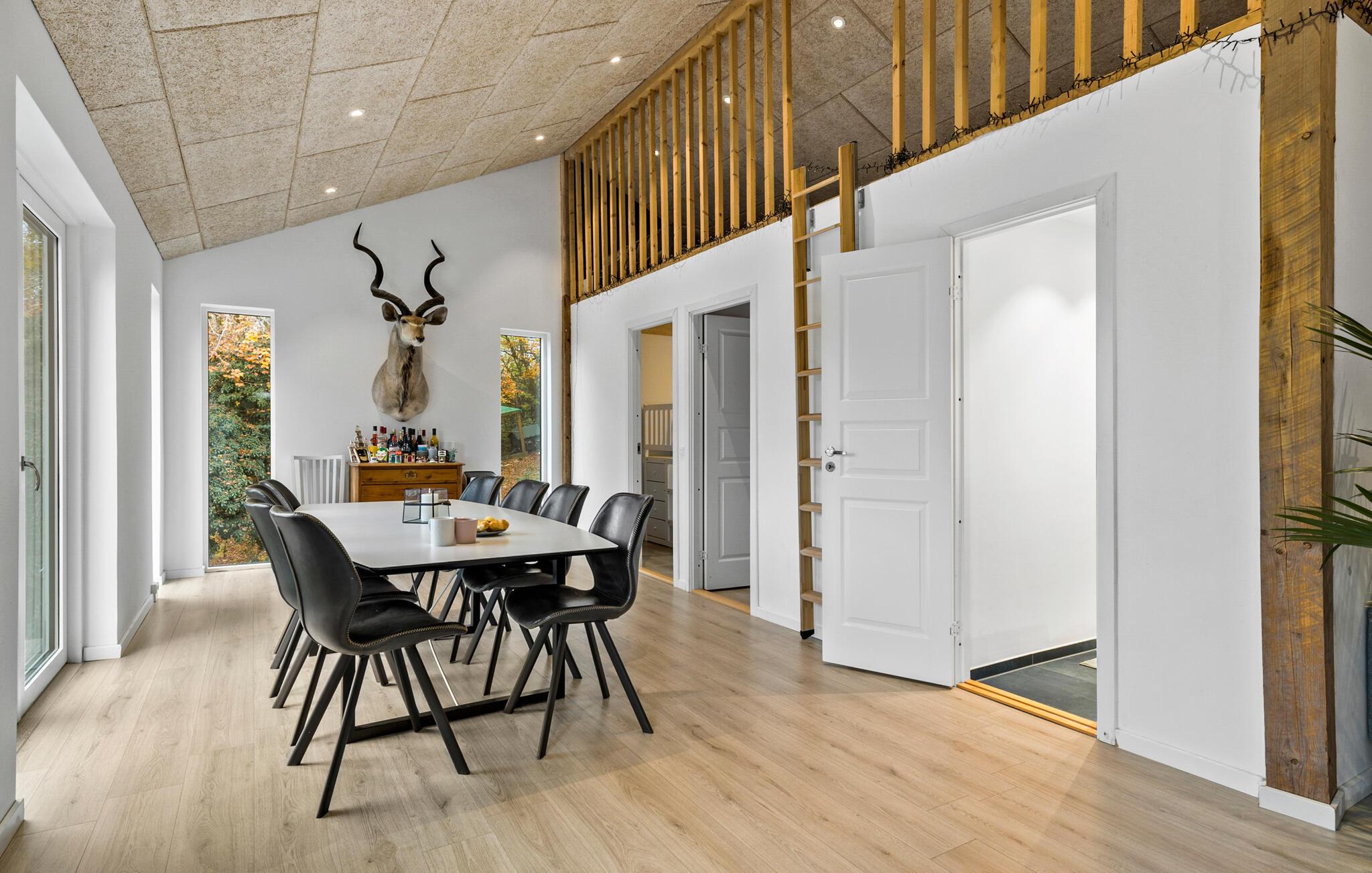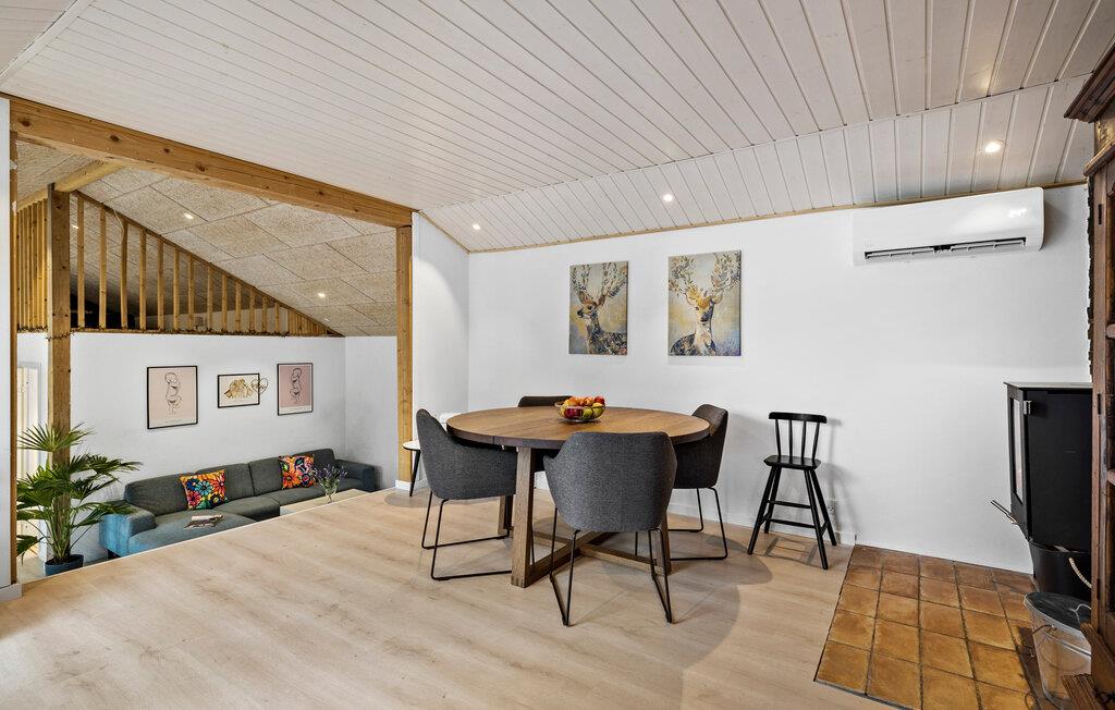 Det moderne og stilfuldt indrettede feriehus giver masser af plads og byder på en indbydende atmosfære. Brug den rummelige opholdsstue med de lyse rum til at tilbringe tid sammen. De store vinduer giver en vidunderlig udsigt over haven og poolen. Sæt jer til rette i den hyggelige siddekrog, og nyd husets ro og komfort.