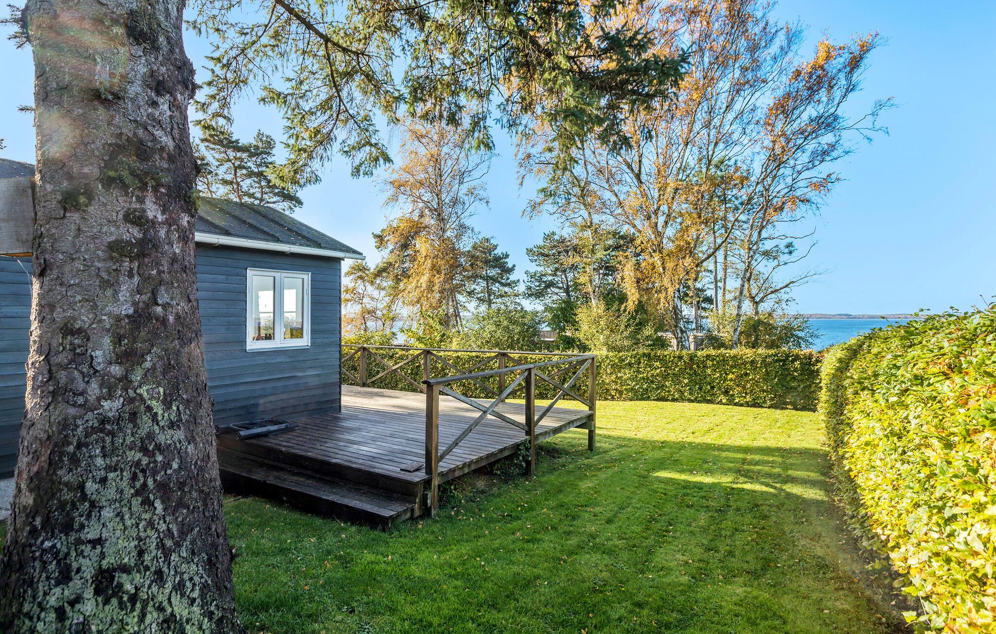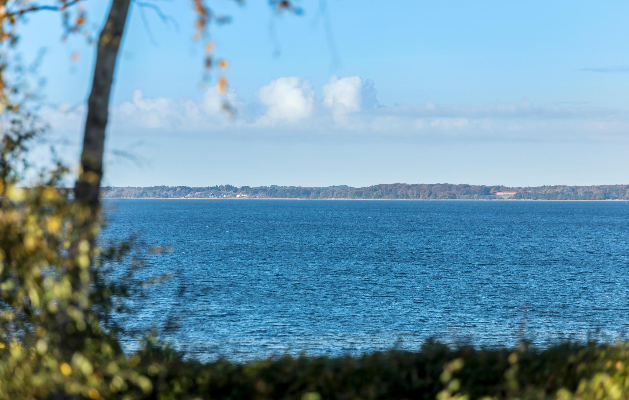 Elegant feriehus med fjordudsigt ved Ølsted Strand, ideelt til afslapning i smukke naturomgivelser.