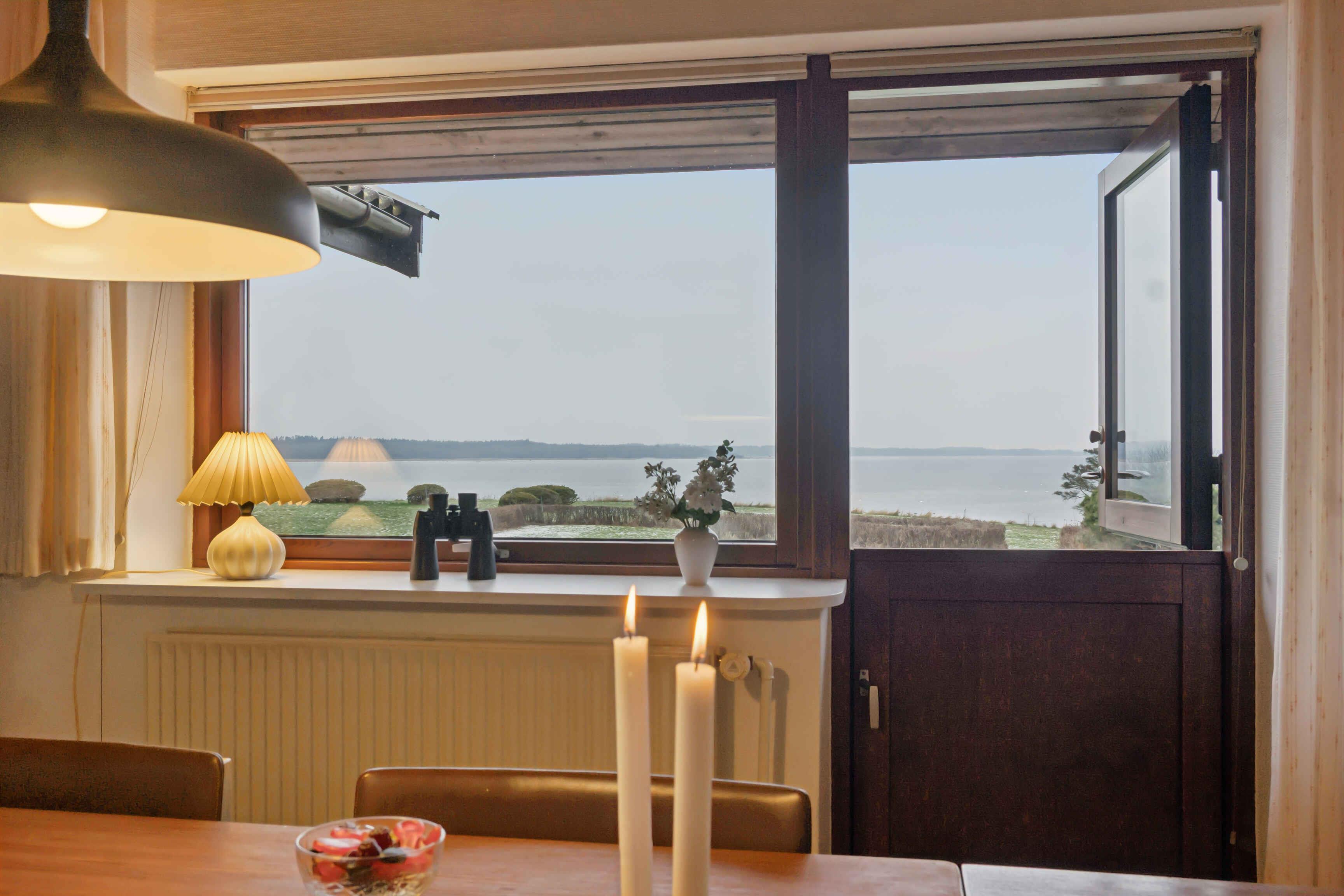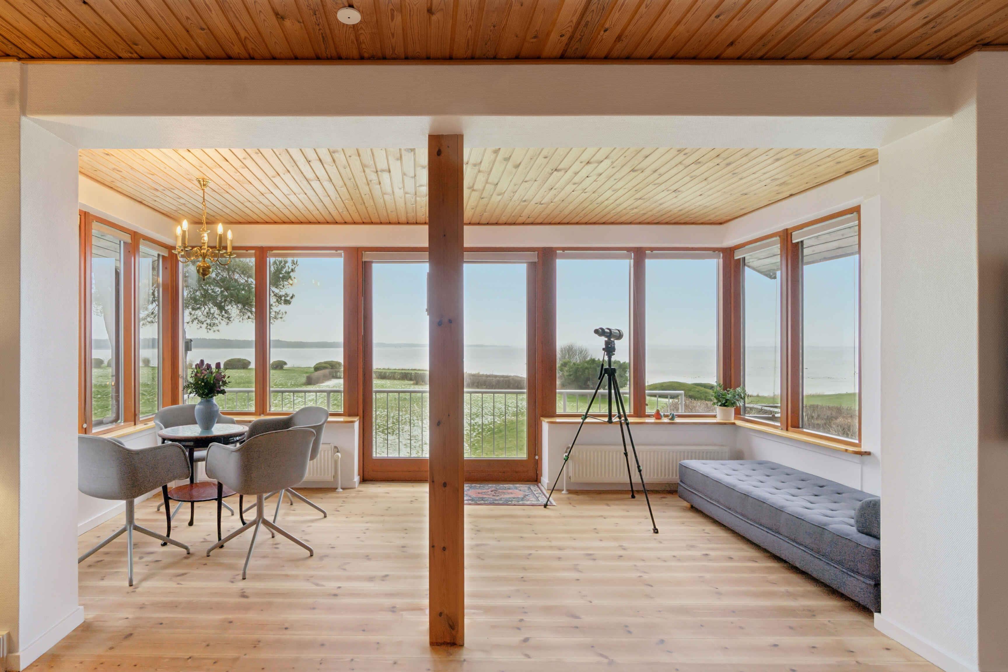 Nyd en unik naturferie med panoramaudsigt og strand kun 25 m fra dette rummelige sommerhus i Ølsted.