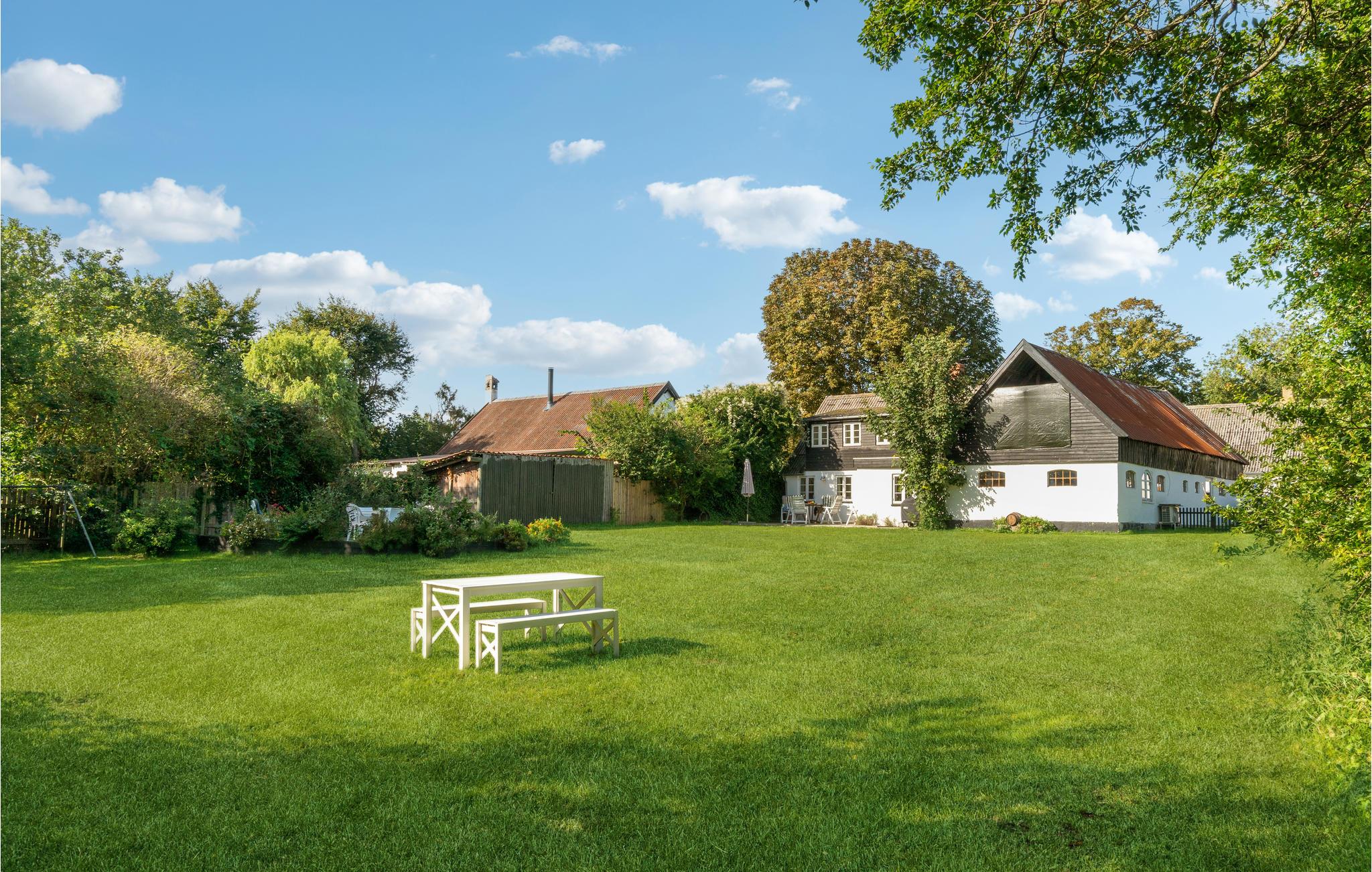 Jeres børn har masser af plads til at lege på ejendommen, hvad enten det er på gyngen eller i sandkassen. Slap af med en bog og en kold drink på solterrassen midt i haven og se de små hoppe vildt på trampolinen.