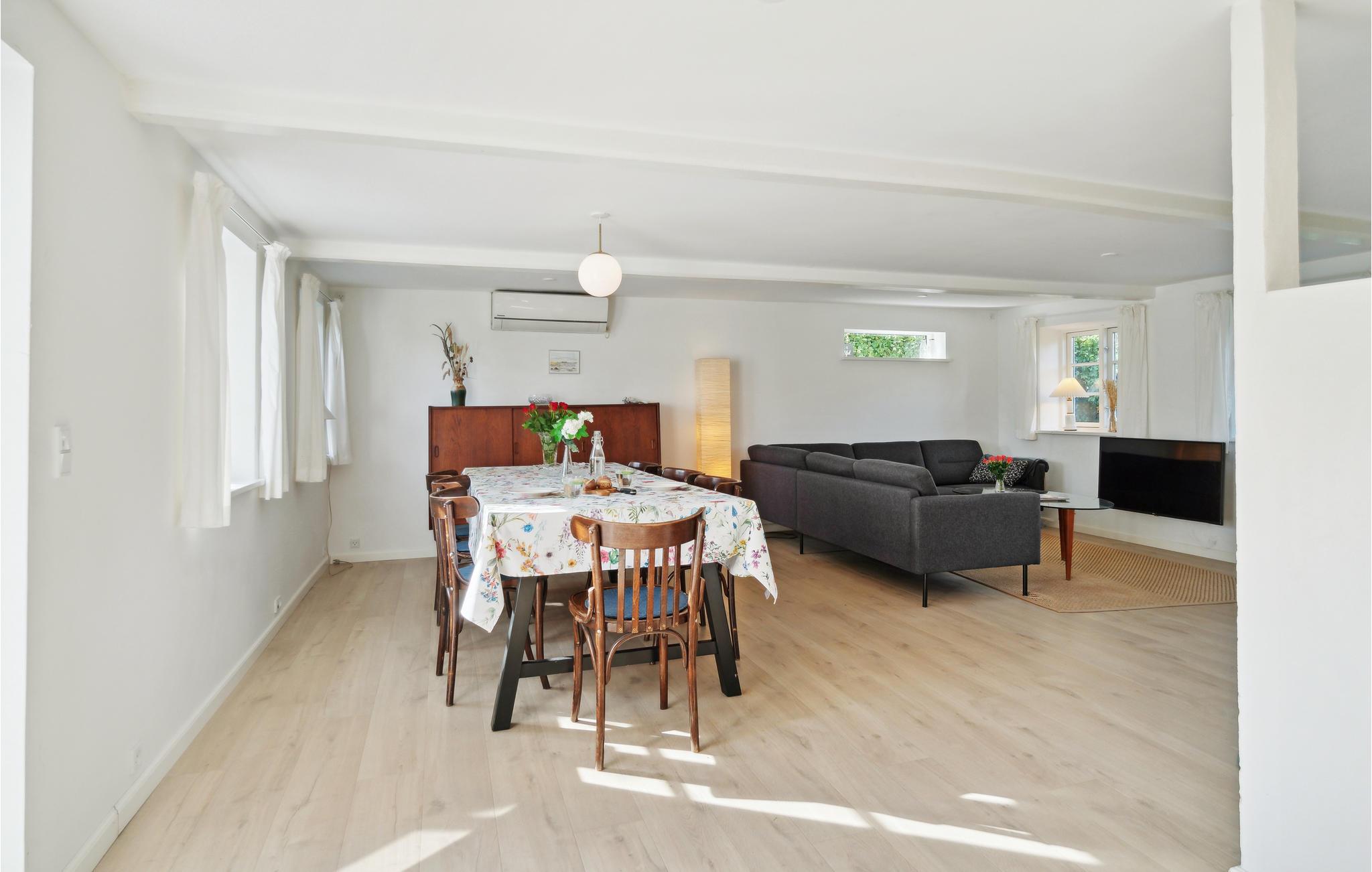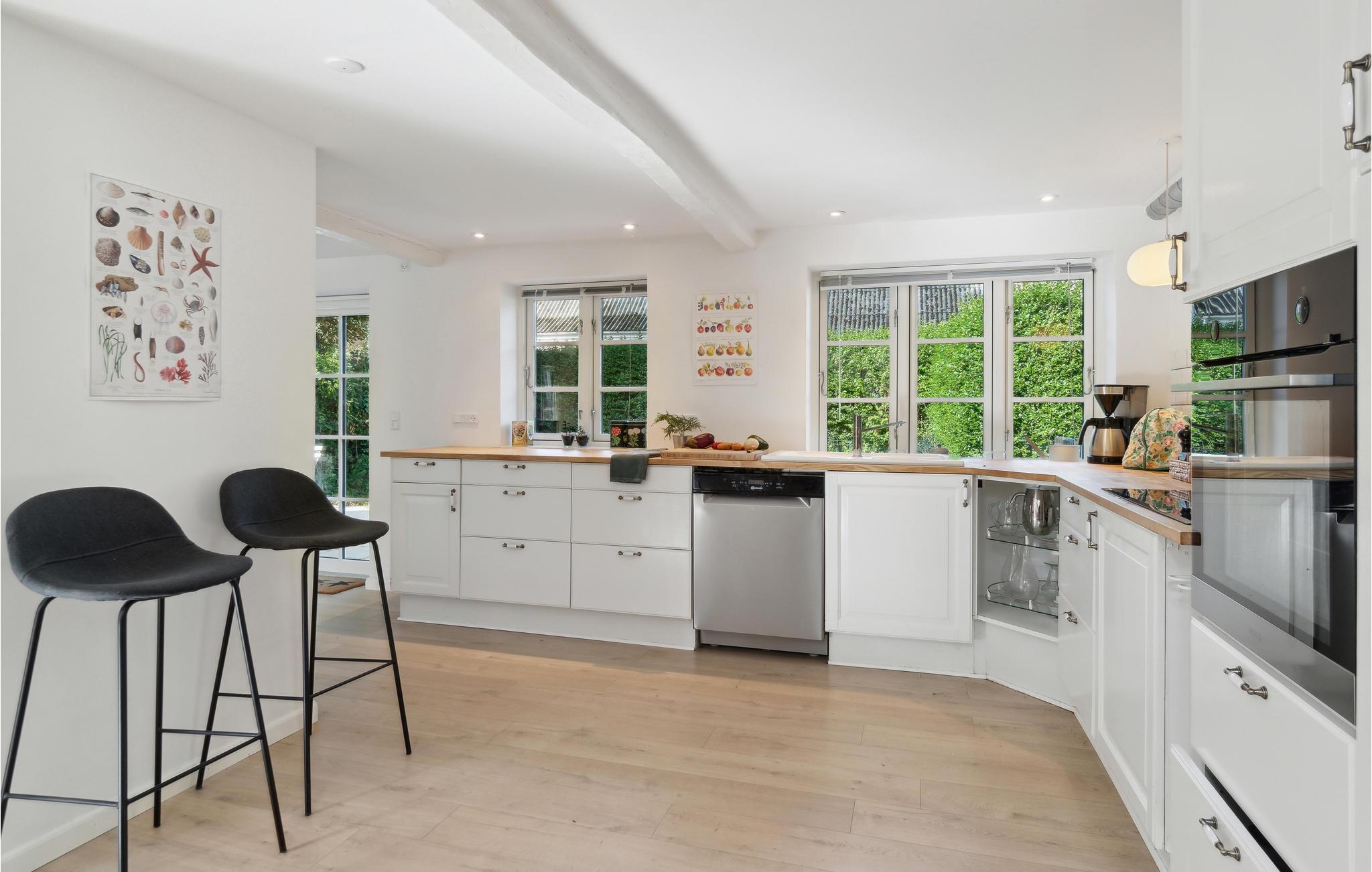 Det moderniserede landsbyhus byder jer velkommen med den perfekte blanding af originale detaljer og moderne faciliteter. Føl jer godt tilpas i de lyse, smagfuldt indrettede lokaler, som byder på masser af plads til en hyggelig samvær. Efter at have spist sammen, kan I sætte jer godt til rette sammen i sofaen, læse en historie, mens brændeovnen knitrer, eller spille et spil sammen og slutte dagen af ??i fred.