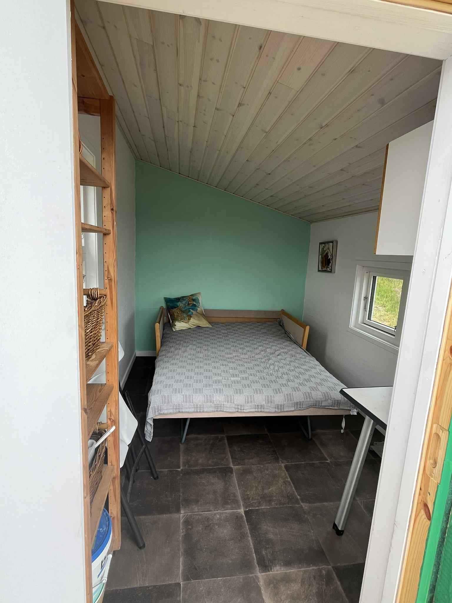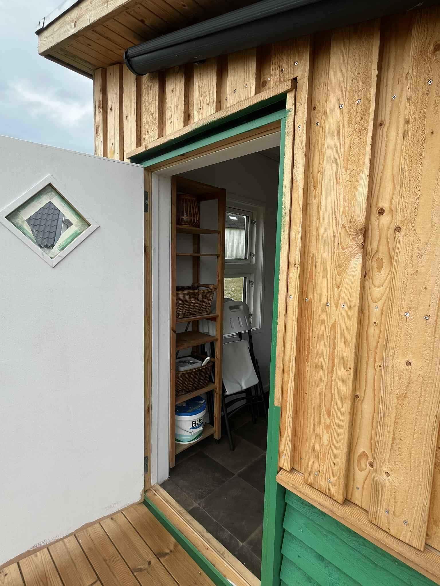 Smukt beliggende retreathyttet til to perosner. Adgang til køkken, toilet og udendørsbruser er udenfor hytten , samt bålplads