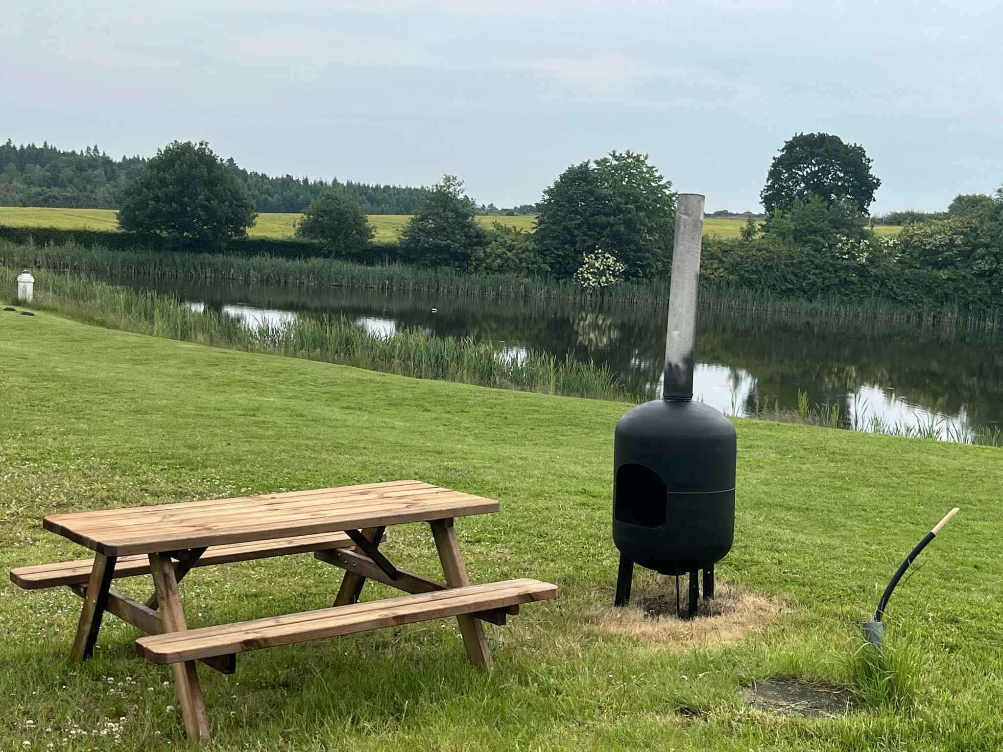 Fredelig søhytte med natur og bålplads