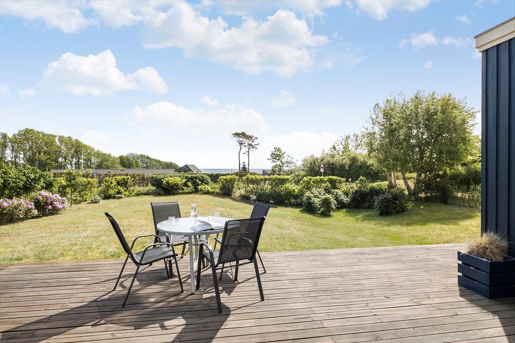 Fra husets store terrasser kan udsigten over Kattegat nydes. Nyd de tidlige morgentimer med en kop kaffe mens solen stiger op af havet eller de lange, lune sommeraftener på terrassen med grill, rødvin og bare lutter idyl.