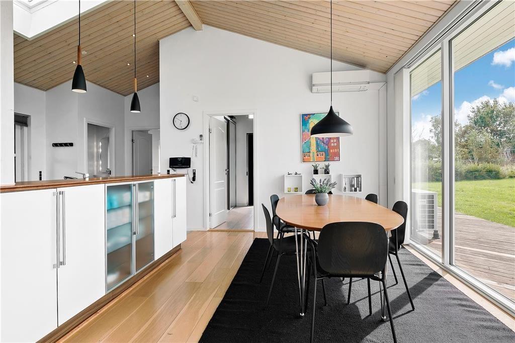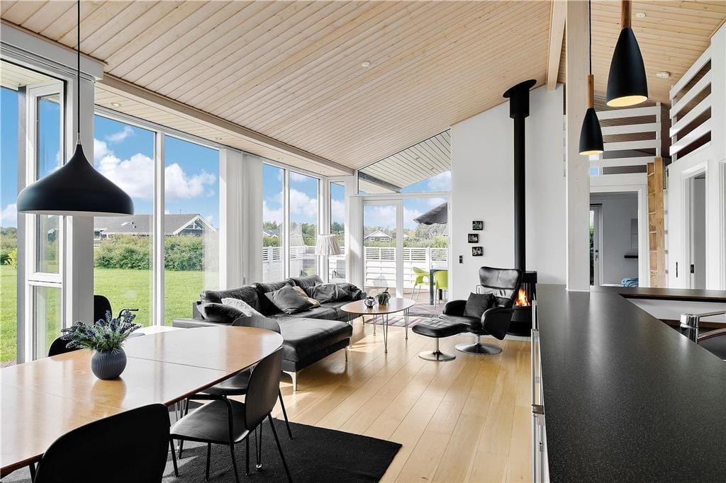 De store vinduespartier lukker masser af dejligt lys ind i stort set hele huset og især det store alrum-stue er badet i livsbekræftende sollys Overalt er huset moderne og smagfuldt indrettet og det er udstyret, så selv den mest kræsne sommerhusgæst må lade smilerynkerne få frit spil. Der er fire store, lyse værelser med gode senge, samt to badeværelser, hvor der på det store er en lækker spa og en skøn sauna.