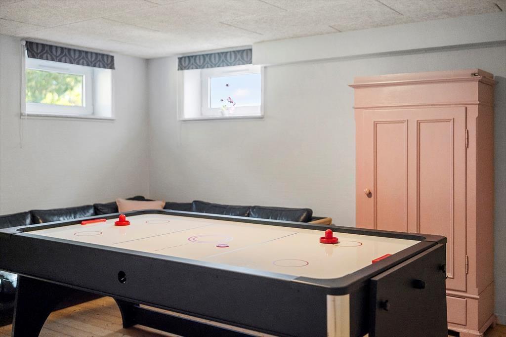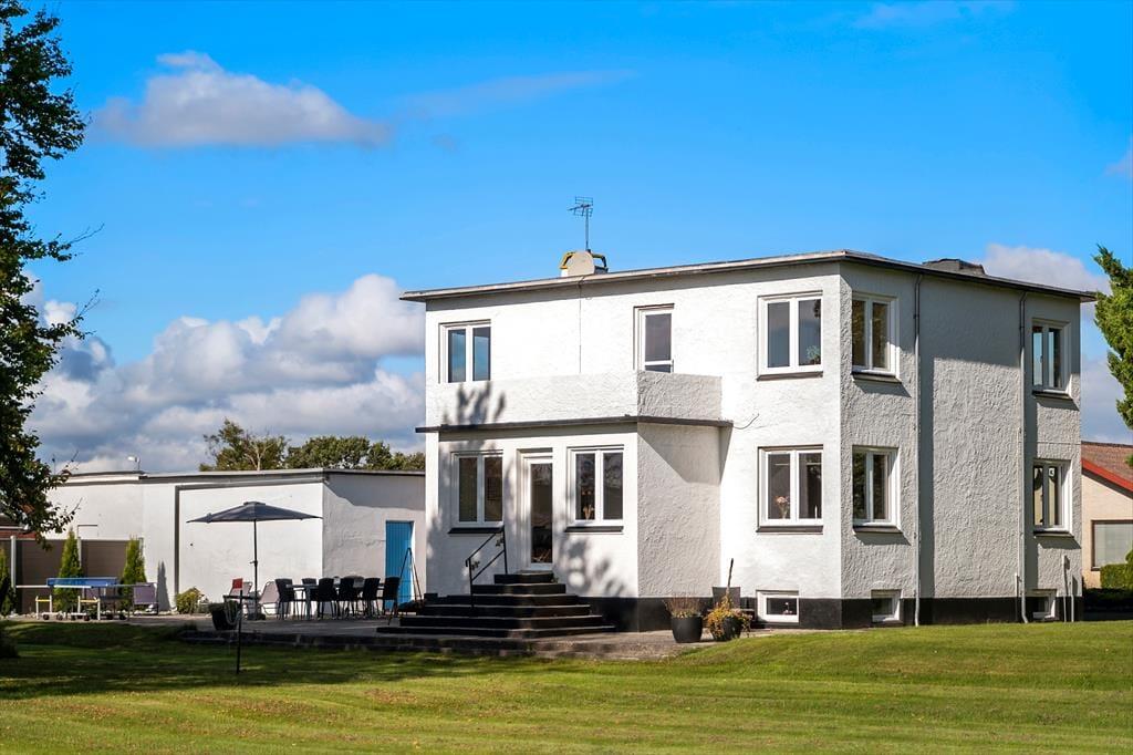 Allerede ved indgangspartiet bliver man mødt af en flot og høj trappe og fire store søjler – tankerne ledes straks hen på ’Borte med Blæsten’! Indenfor fortsætter stilen med en flot hall med en istandsat trappe til 1.salen, som rummer tre af sommerhusets seks værelser, et lækkert badeværelse med spabad og en lille stue med udgang til altan. I stueetagen finder man udover hallen også et stort køkken, en stue med et stort sofaarrangement, et værelse, et badeværelse og endnu en lille stue, som kan åbnes op til haven og terrassen, mens kælderen rummer 2 værelser, et badeværelse og et hyggeligt aktivitetsrum med bl.a. bordfodbold og PlayStation-konsol. Alt i sommerhuset er nyrenoveret, så det fremstår i flot, moderne og tiptop stand med nyt inventar, velfungerende hårde hvidevarer og smukke møbler. Her er også trådløst internet og parabol, så både voksne og børn vil med garanti få mange gode og uforglemmelige timer i det skønne hus.