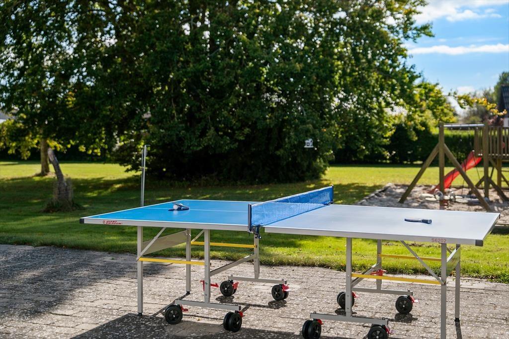 Sommerhuset ligger på en stor, lukket havegrund med en kæmpe græsplæne, fodboldmål, legetårn, gynge, sandkasse og vippe. På den store og flotte terrasse er der gode havemøbler, tre solvogne, parasol, en fin grill, en lille bålplads og masser af plads til at lege og nyde sommeren, så også de udendørs rammer må siges at være helt ideelle for alle i familien.