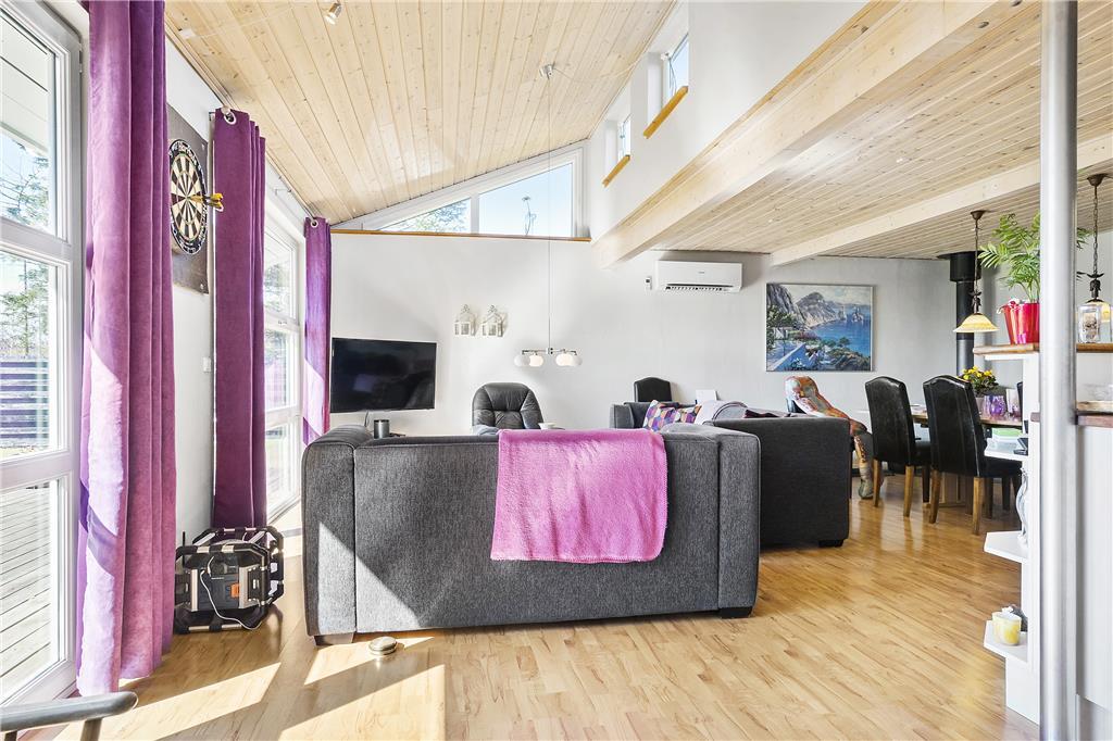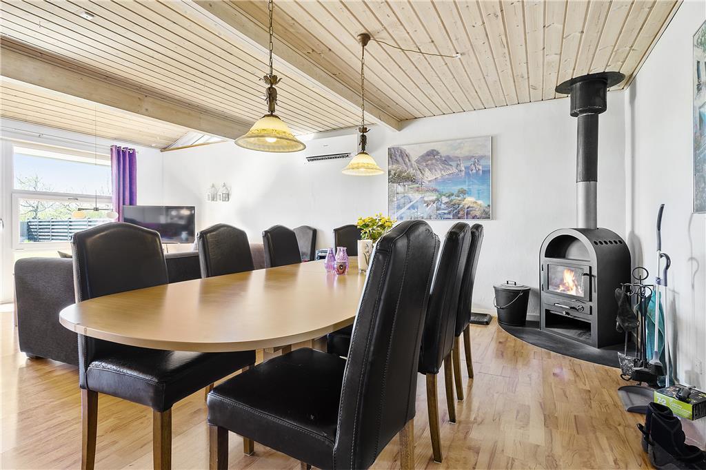 Når du træder ind i sommerhuset på Rugvænget 4, mødes du af en hyggelig og indbydende atmosfære. De lyse rum og den funktionelle indretning giver en dejlig følelse af ro og ferie. Sommerhuset er perfekt til dem, der ønsker både privatliv og fælles ophold. Der er et separat soveværelse i annexet, som giver ekstra privatliv – ideelt til et par eller de voksne, der ønsker lidt mere fred og ro. Indenfor er der god plads til at samles og hygge sig med fælles måltider og afslapning. Den rummelige stue med brændeovn skaber en varm og indbydende stemning, og i køkkenet er alt, hvad du behøver, for at tilberede feriens måltider.