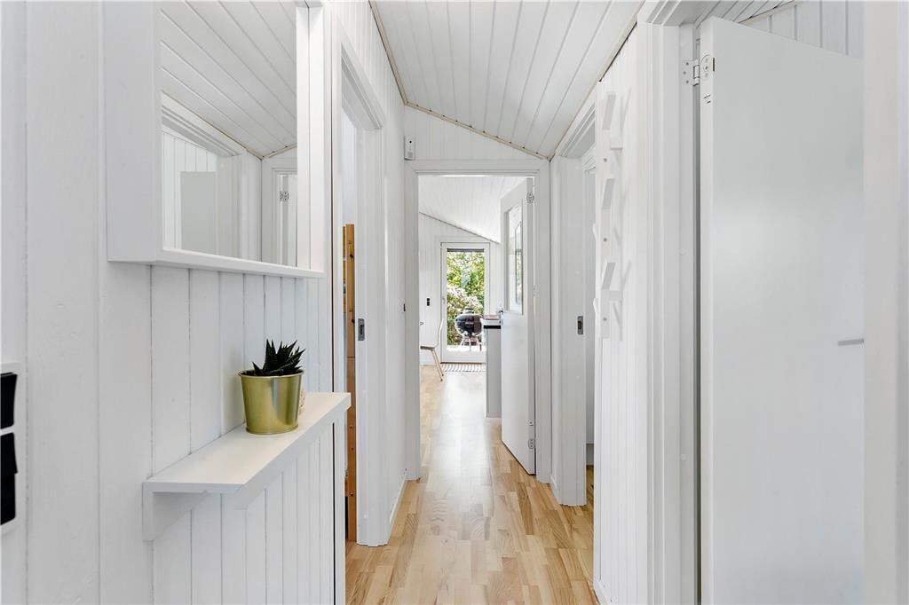 Det åbne køkken , der ligger i direkte forbindelse med stuen og spisekrogen, er perfekt og moderne indrettet. Her findes alt, der skal bruges, for at tilberede maden til hele famileien. Stuen der fremstår meget lyst, har store vinduer og inbyder til hyggeaftenenr foran brændeovn. Her kan familien samles til spil eller afslapning foran TV. I huset er der tre soverum , to med dobbelseng og et med køjesenge. Badeværelset er moderne indrettet og gulvvarmen spreder en dejlig varme. Fra stuen kommer man ud på en delvis overdækked terasse .