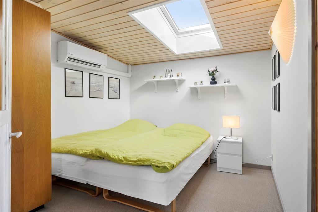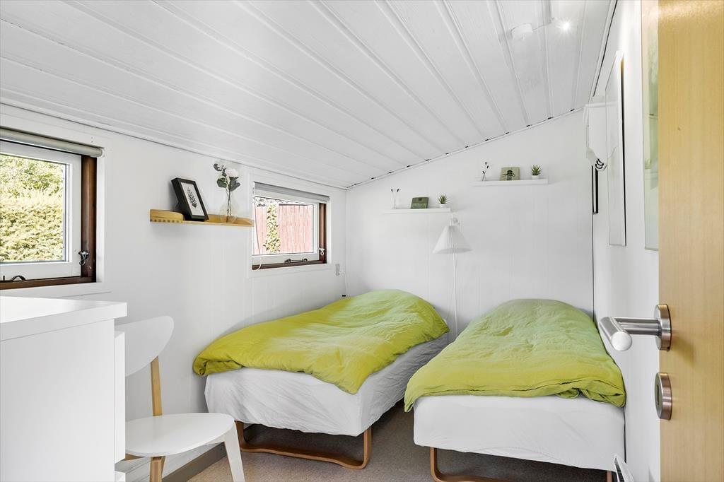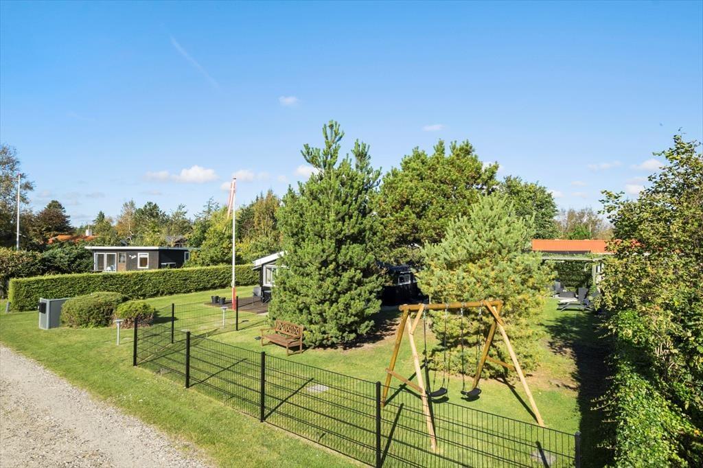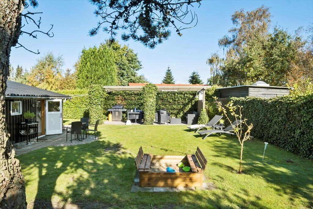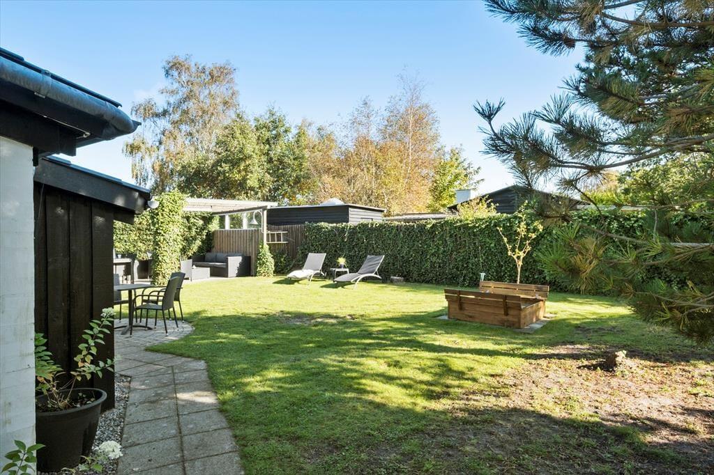 Den lukkede have omkring sommerhuset er helt oplagt til både leg og afslapning for store og små. Her kan børnene kaste sig ud i sjove eventyr på gyngerne og i sandkassen, og du kan trygt lade familiens hund løbe frit omkring i de trygge omgivelser. På terrassen kan I dække op til måltider i det fri, og der står en grill klar til at sikre sommerens dejlige grilloplevelser. Havens træer og buske giver privatliv og læ for vinden, så I kan nyde dagene og de lange sommeraftener udendørs – hvad end det er med en kop kaffe i solen eller aftenhygge omkring grillen i familiens selskab.
