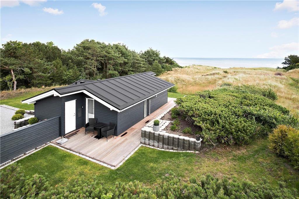 Dette skønne feriehus i Øster Hurup har en helt suveræn placering, hvis I holder af havluft og fri natur. Huset ligger blot 75 meter fra stranden, og fra både opholdsrum og terrasser er der en fantastisk udsigt over havet og det naturrige landskab.