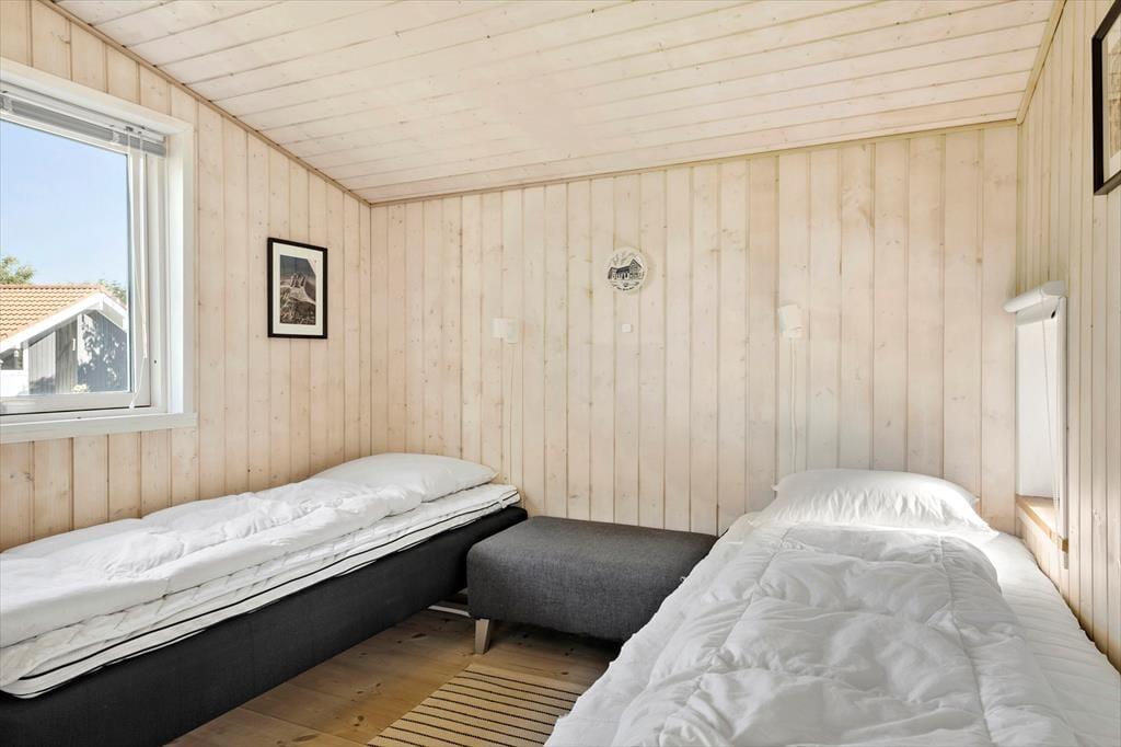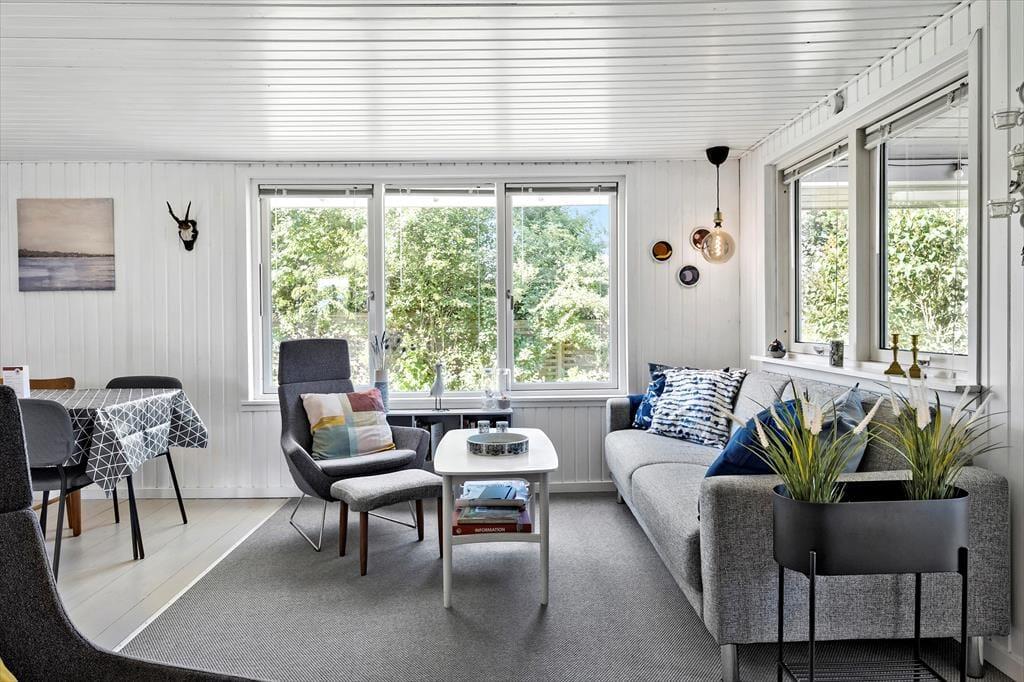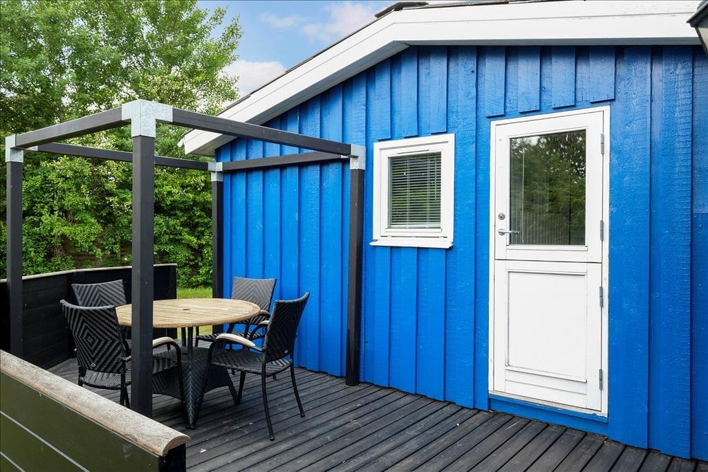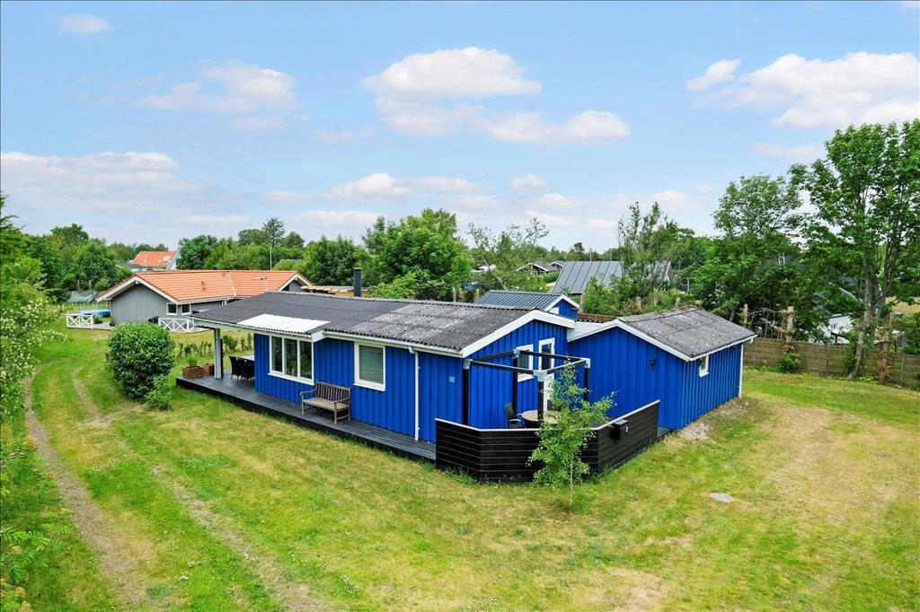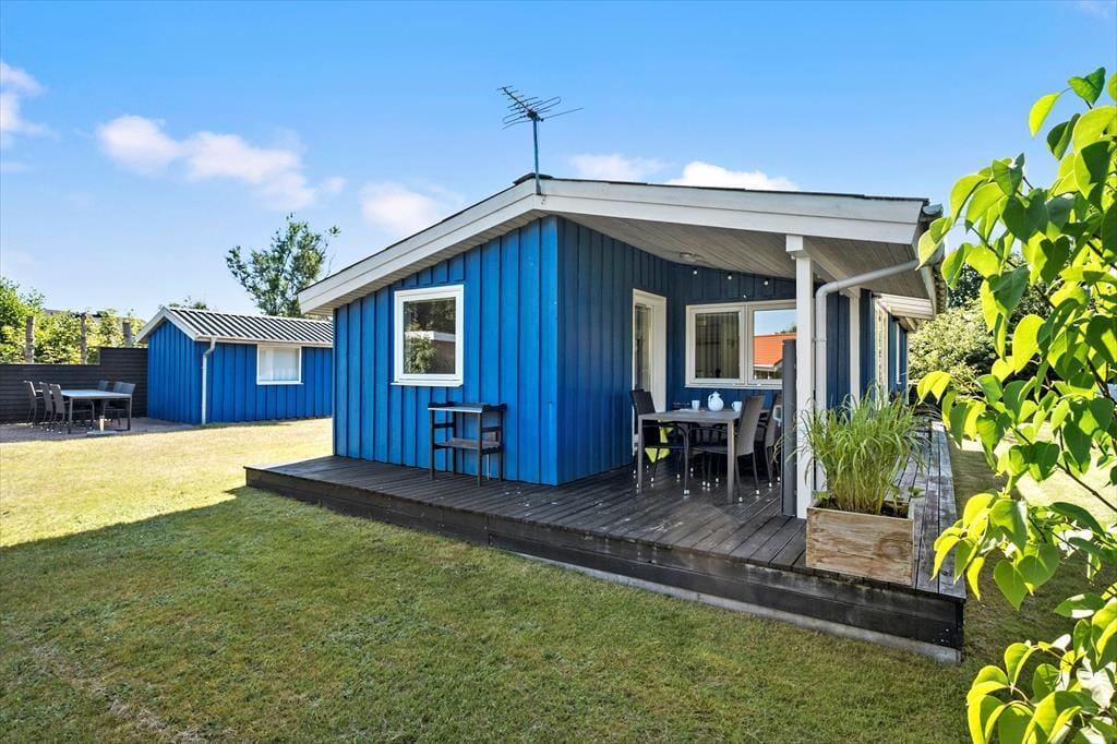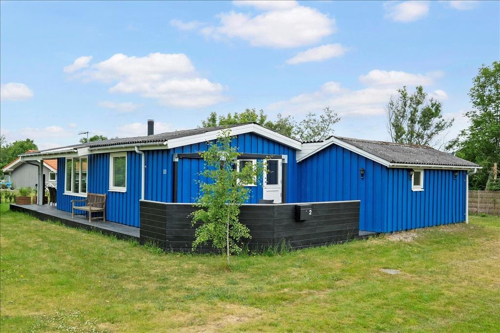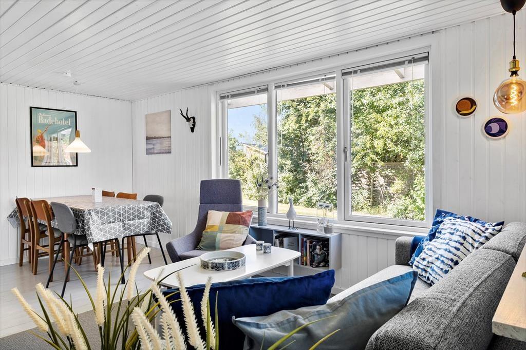 Huset emmer af klassisk charme med sin blåmalede træfacade og hvide vinduesrammer, der skaber en skøn kontrast til alt det grønne i haven. Her mærker man feriefølelsen indfinde sig, så snart man parkerer bilen! Indenfor i huset er der lyst og indbydende, og indretningen er ideel til det hyggelige samvær på ferieturen. Stue og køkken ligger i åben forbindelse, og en brændeovn tilfører ekstra lune, når aftenen falder på. Hjørnevinduerne i stuen trækker masser af lys ind i huset. I får tre soverum, hvoraf de to har egen udgang til terrasse. Herudover et badeværelse med brus.