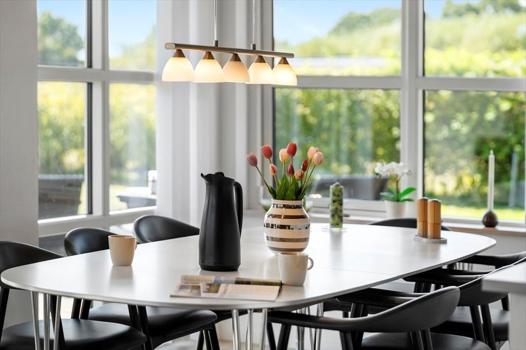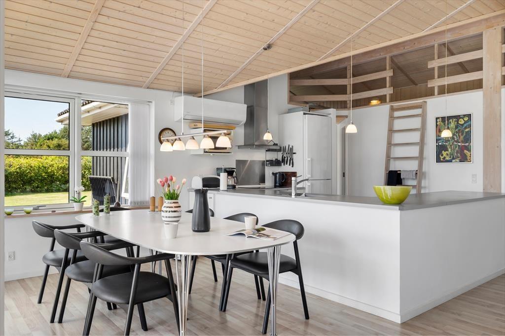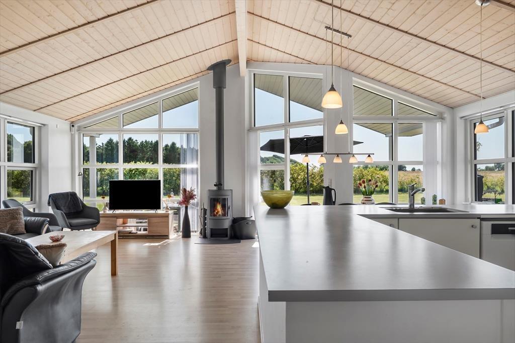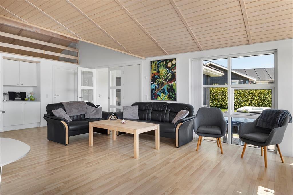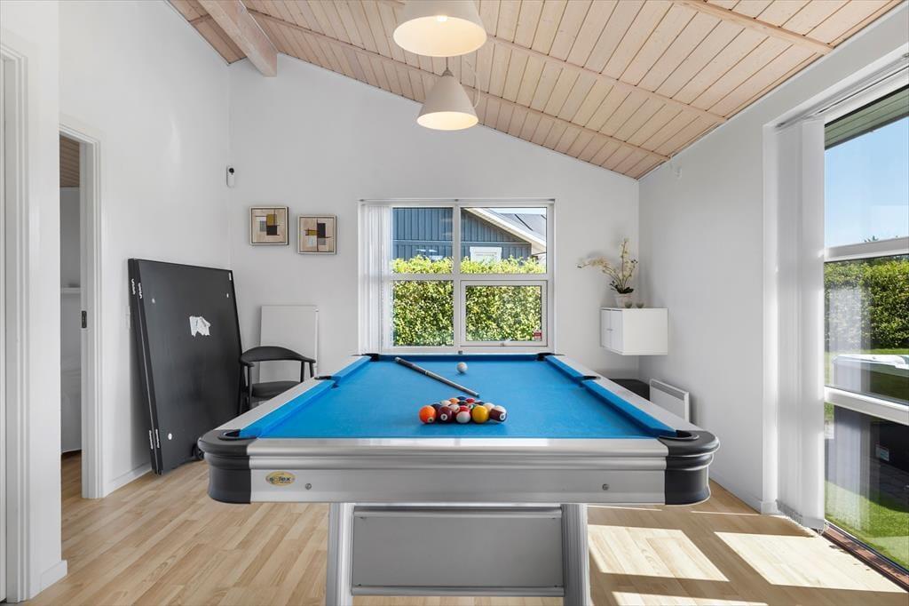Sommerhuset er opført i 2008 og byder på en lys, moderne og stilfuld indretning, der skaber de perfekte rammer om en dejlig ferie. Hjertet i huset er det store opholdsrum med brændeovn, hvor du kan nyde aftenernes knitren fra flammerne, mens du slapper af i de komfortable møbler. Når du ikke samles i stuen, frister aktivitetsrummet med både poolbord og bordtennis – en oplagt ramme om hyggelige turneringer og mange timers sjov for både store og små. Badeværelserne byder på ekstra luksus i form af spabad og sauna, og når dagen går på hæld, kan du glæde dig til en god nats søvn i sommerhusets rummelige værelser, der tilsammen giver plads til hele ti personer. Og har du lyst til at have din hund med på ferie, er den også hjertelig velkommen her.