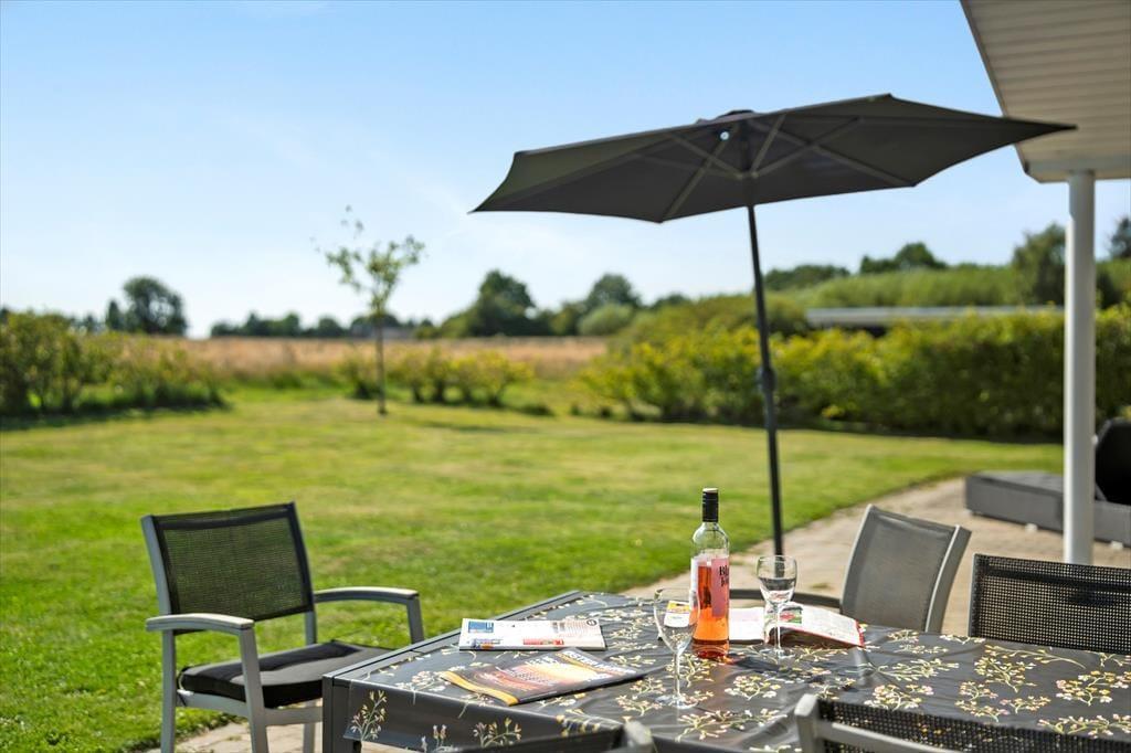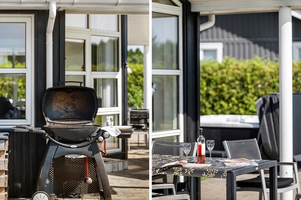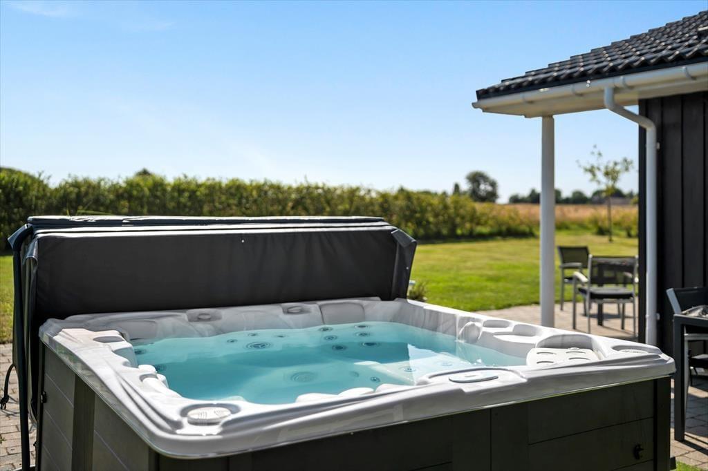 På den 1345 m2 store grund er der lagt op til masser af livsnyderi under åben himmel. Sommerhuset har både åbne og overdækkede terrasser, så du altid kan finde en perfekt plet – hvad enten du vil slikke sol, nyde skyggen eller samles omkring aftensmaden på lune sommeraftener. Og som prikken over i’et venter der dig en oplevelse ud over det sædvanlige i det udendørs spabad: Glæd dig til at sætte dig i det varme, boblende vand og mærke, hvordan skuldrene sænker sig, mens du nyder udsigten til den grønne grund og måske en stjerneklar aftenhimmel. De rolige omgivelser omkring sommerhuset gør det nemt at koble helt af og lade hverdagens travlhed blive hjemme.