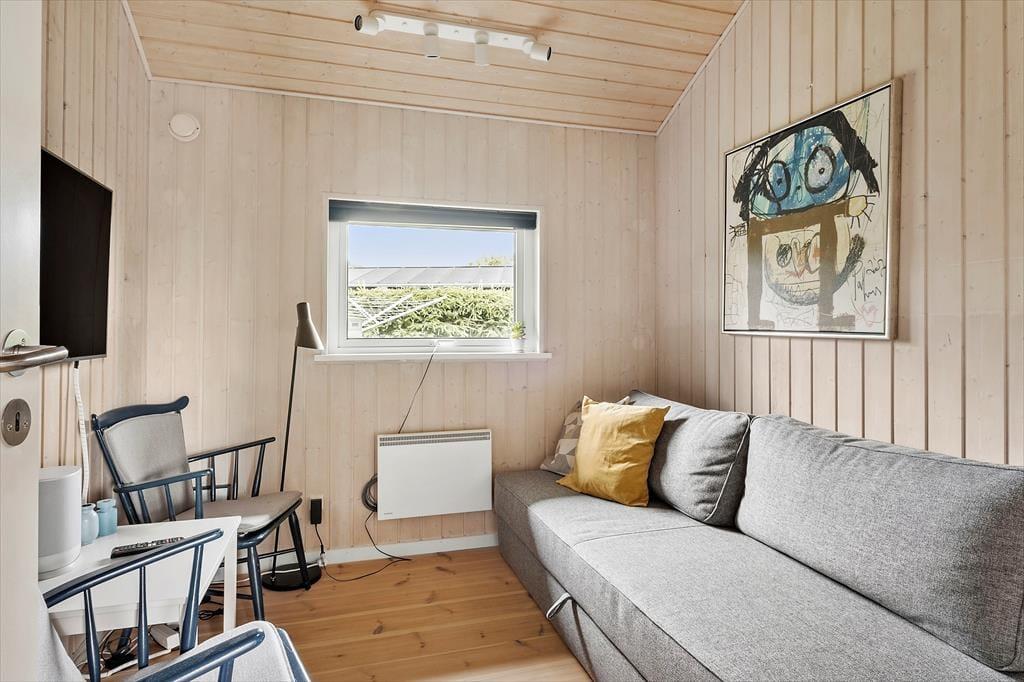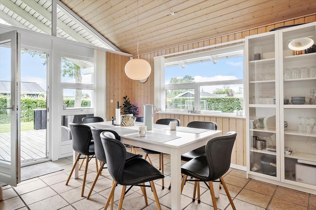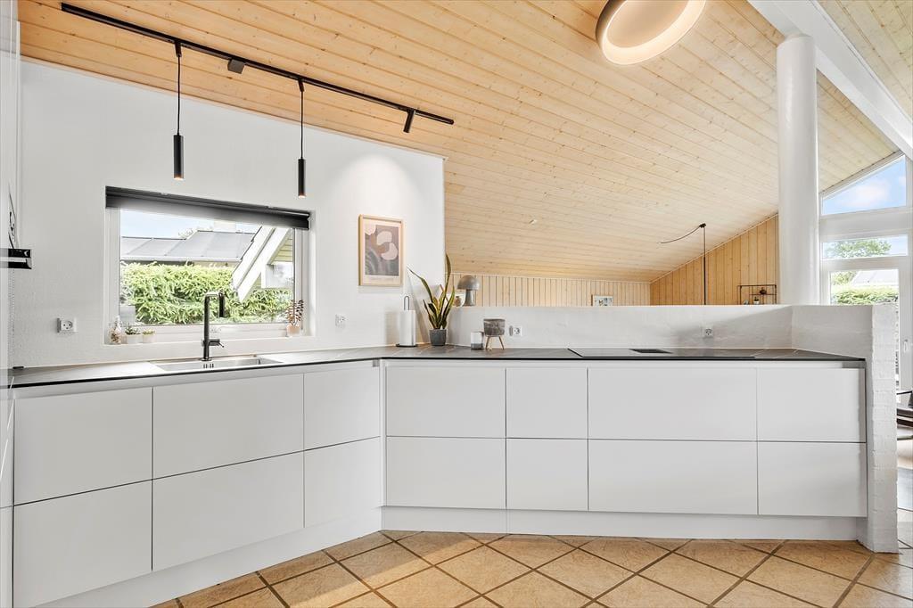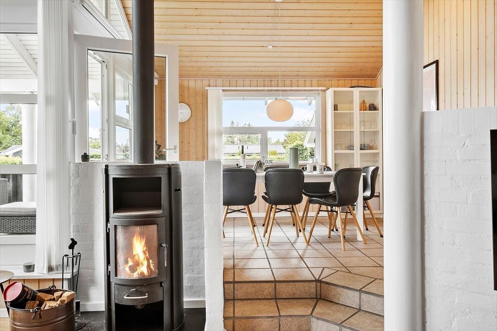 Dette dejlige sommerhus byder på et lyst og åbent køkken, der ligger i forbindelse med stuen, hvor der er god plads til hyggelige måltider og sociale stunder. Her kan du tænde op i brændeovnen og nyde den behagelige varme, mens du slapper af i de komfortable møbler. Huset er moderne indrettet og har et stort anneks til f.eks. familiens store børn. Efter en aktiv dag kan du forkæle dig selv med en tur i saunaen eller spabadet, som giver dig en følelse af wellness og total afslapning.