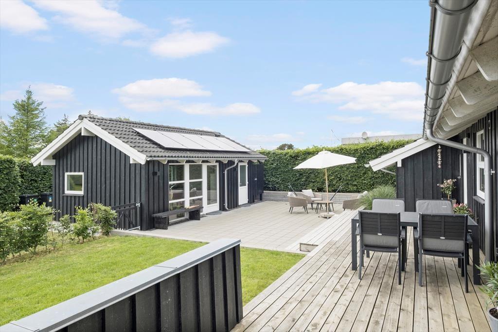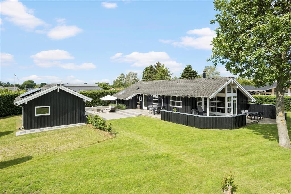Udendørs kan du glæde dig over en stor terrasse med plads til både solbadning og hyggelige grillmiddage. Havemøblerne er både smukke og komfortable, så du kan nyde dine måltider og slappe af i solen. Der er også rig mulighed for at lege og spille bold på græsplænen, som omgiver huset. Når solen går ned, kan du tænde op i grillen og nyde en aften under åben himmel, mens du lytter til naturens lyde og mærker roen sænke sig.