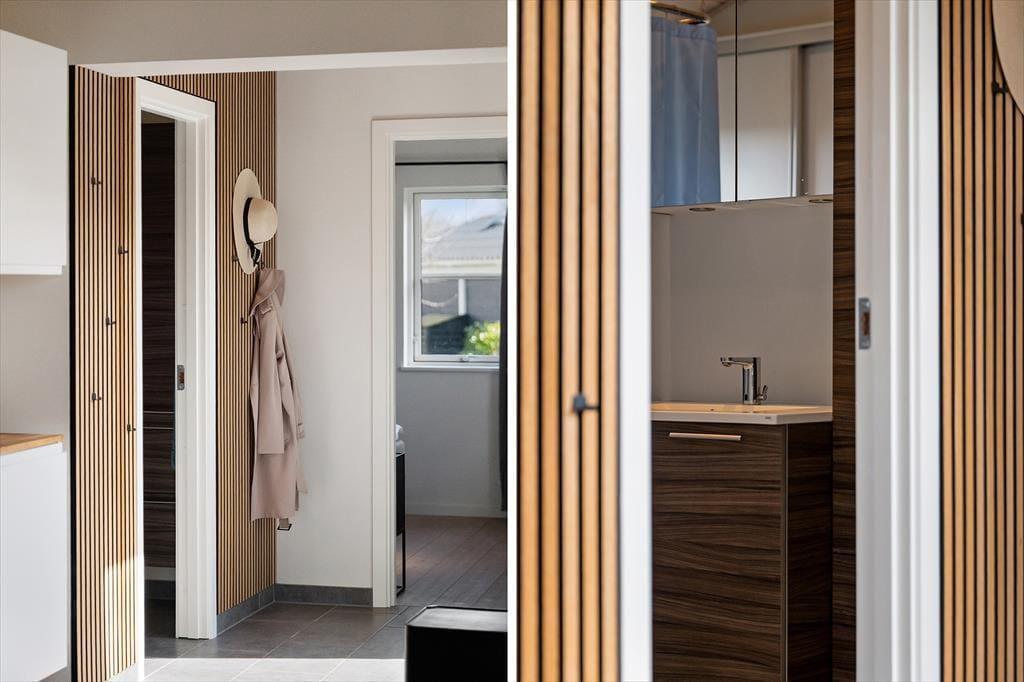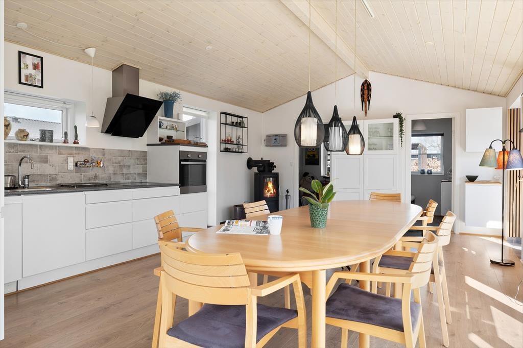 Det første, du lægger mærke til, når du træder ind i huset, er den lyse og moderne stil, som straks får skuldrene til at sænke sig. Her er der tænkt på detaljerne – fra den hyggelige indretning med nøje udvalgte møbler og bløde tekstiler til de mange fine hjørner, hvor man har lyst til at slå sig ned med en kop kaffe eller et spil kort. Opholdsrummet samler jer naturligt med et åbent køkken, spiseplads og sofamiljø i ét, så feriens samtaler og grin får frit spillerum. Hver krog af huset emmer af, at det er et sted, hvor man både kan være social og trække sig lidt tilbage med en god bog. Til de gæster, der gerne vil have ekstra privatliv, er det tilhørende anneks en lille oase i sig selv med dobbeltseng og eget badeværelse – perfekt til bedsteforældre, teenagere eller vennepar, der sætter pris på lidt ro.